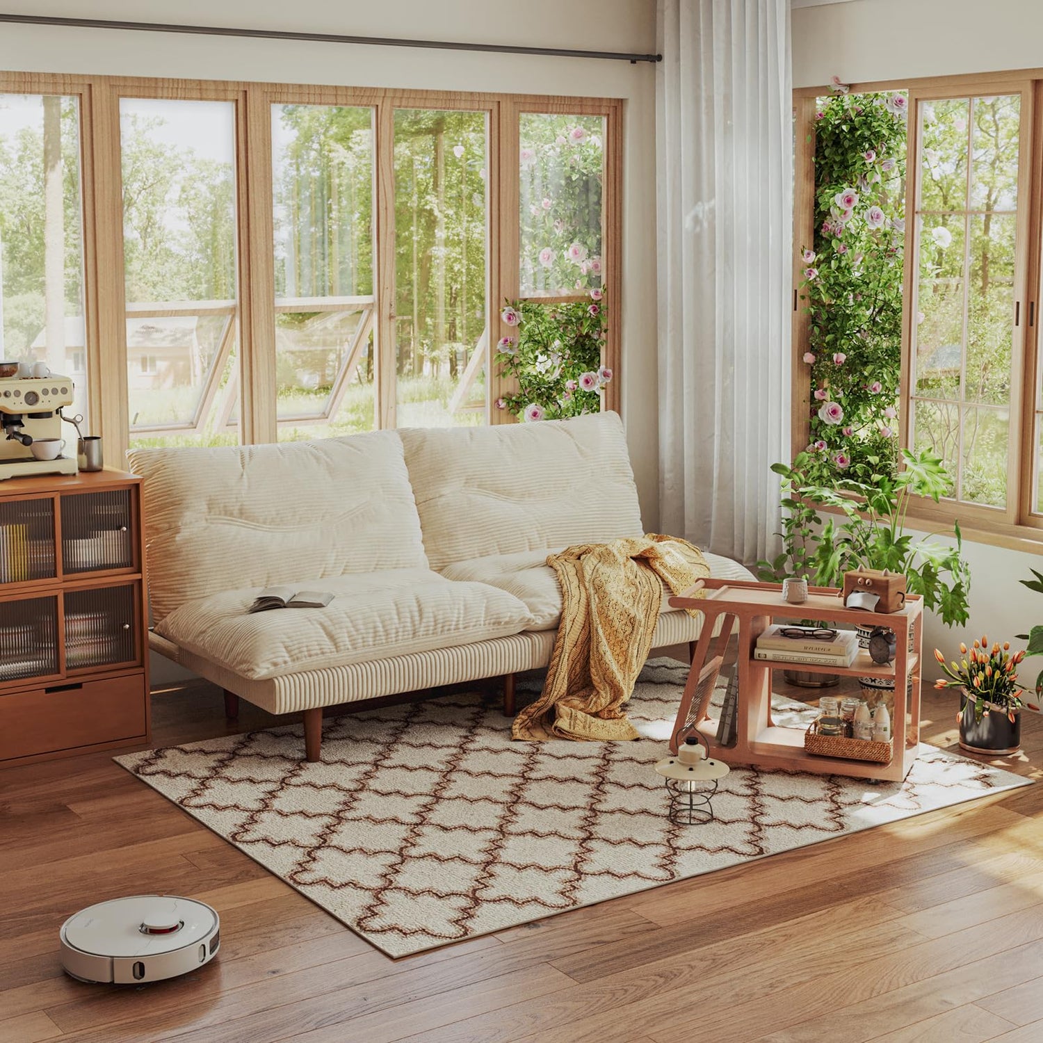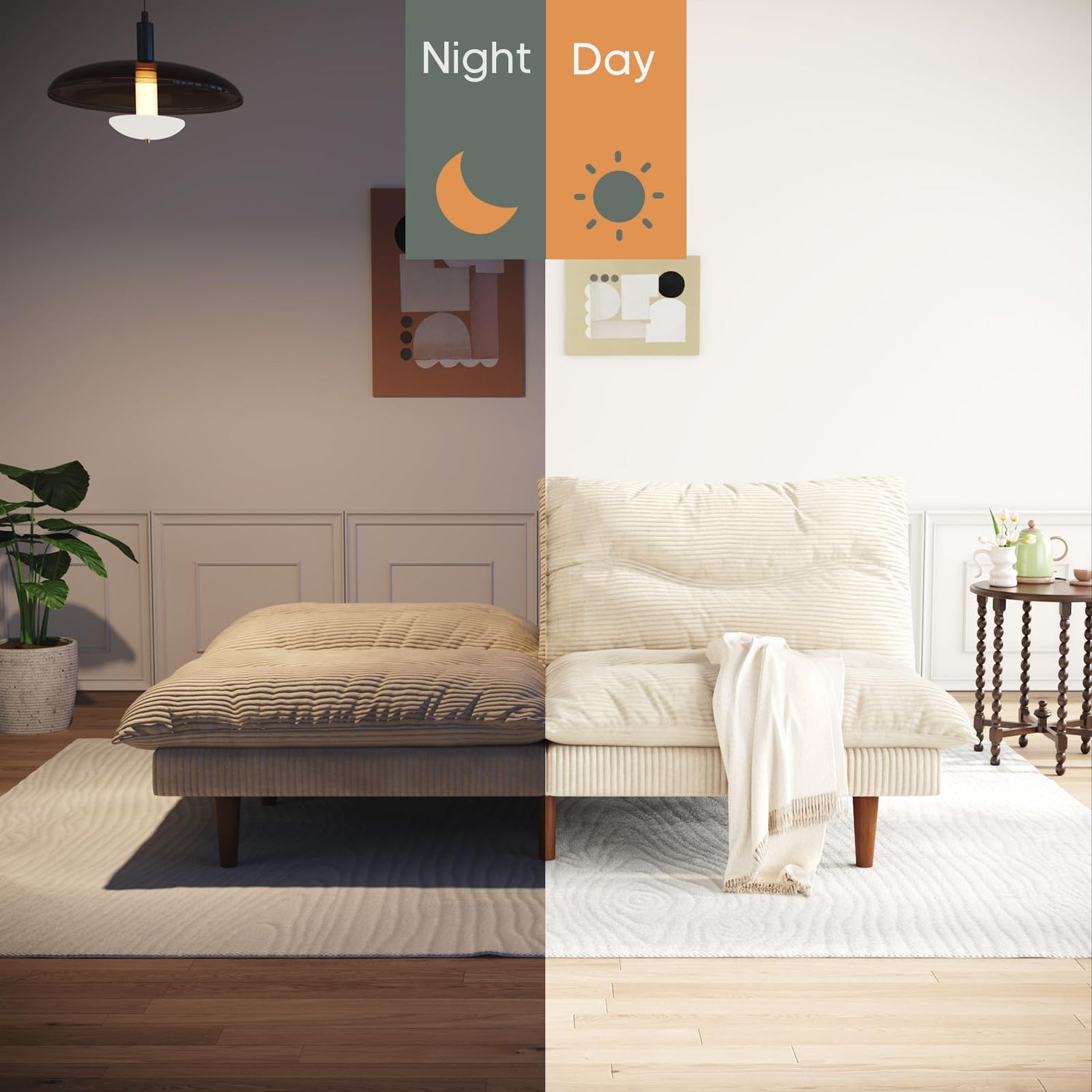 DreamDashio Futon Sofa Bed, 69 inch Futon Couch with Adjustable Backrest, Corduroy Convertible Sleeper Sofa Bed, Folding Sleeper Recliner for Apartment, Living Room, Office, Beige