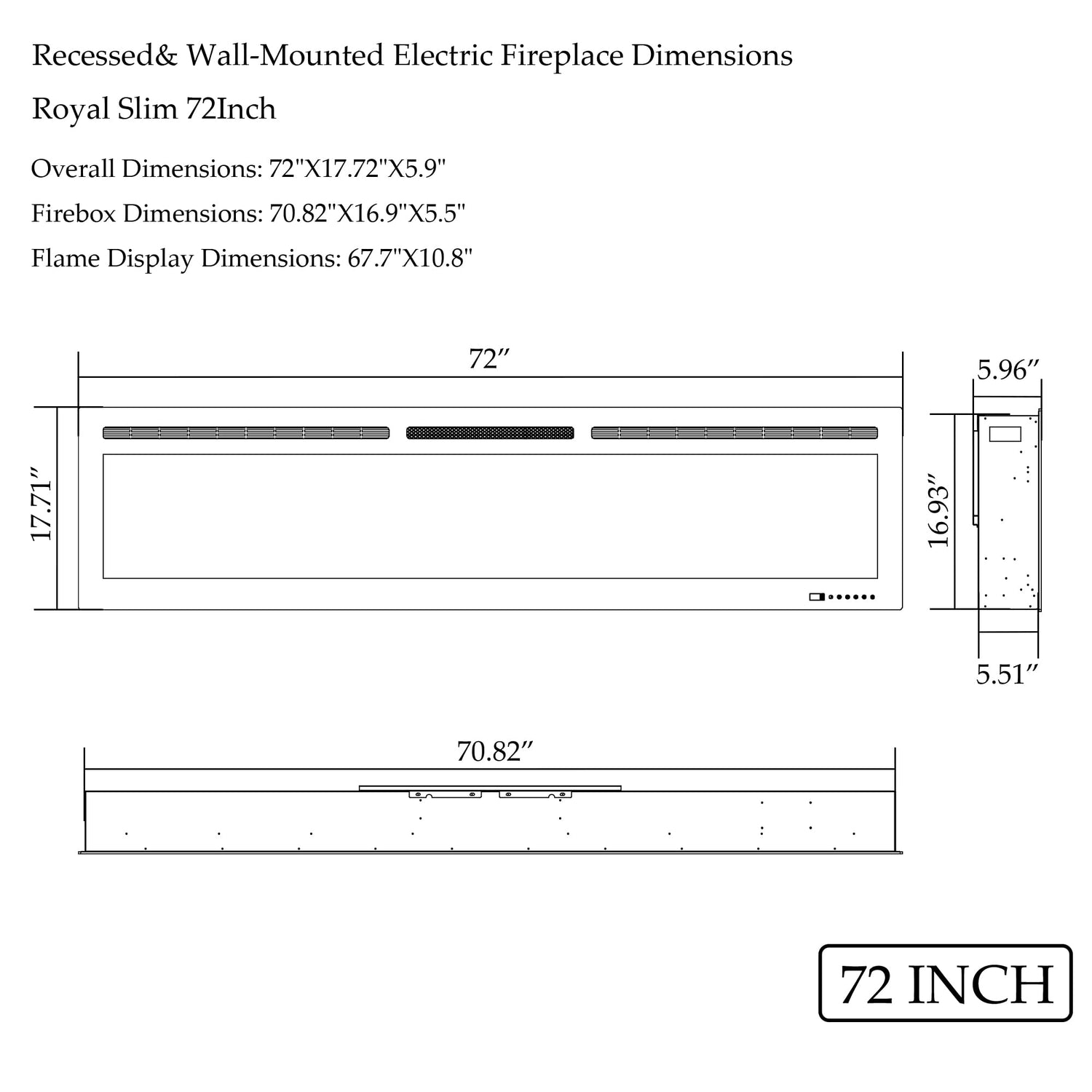 Dreamflame 72" WiFi-Enabled Electric Fireplace, Smart Control via Alexa or App, Recessed & Wall Mounted Fireplace Heater with Thermostat, Slim Frame, Multi-Color Combinations, Black