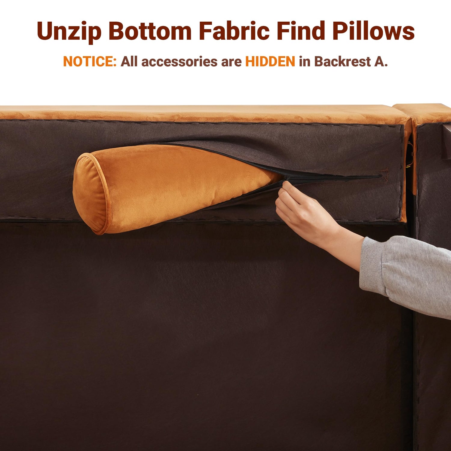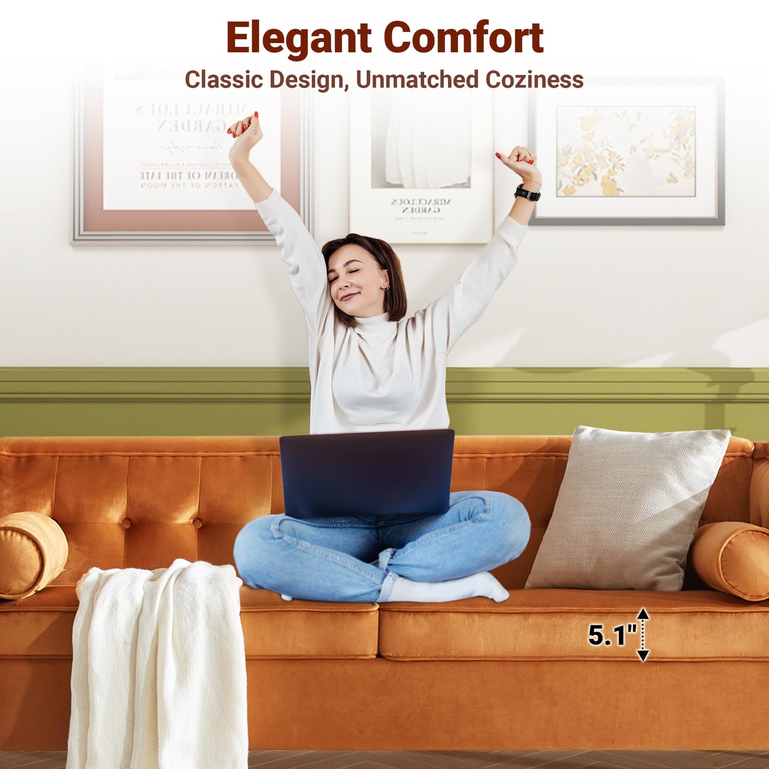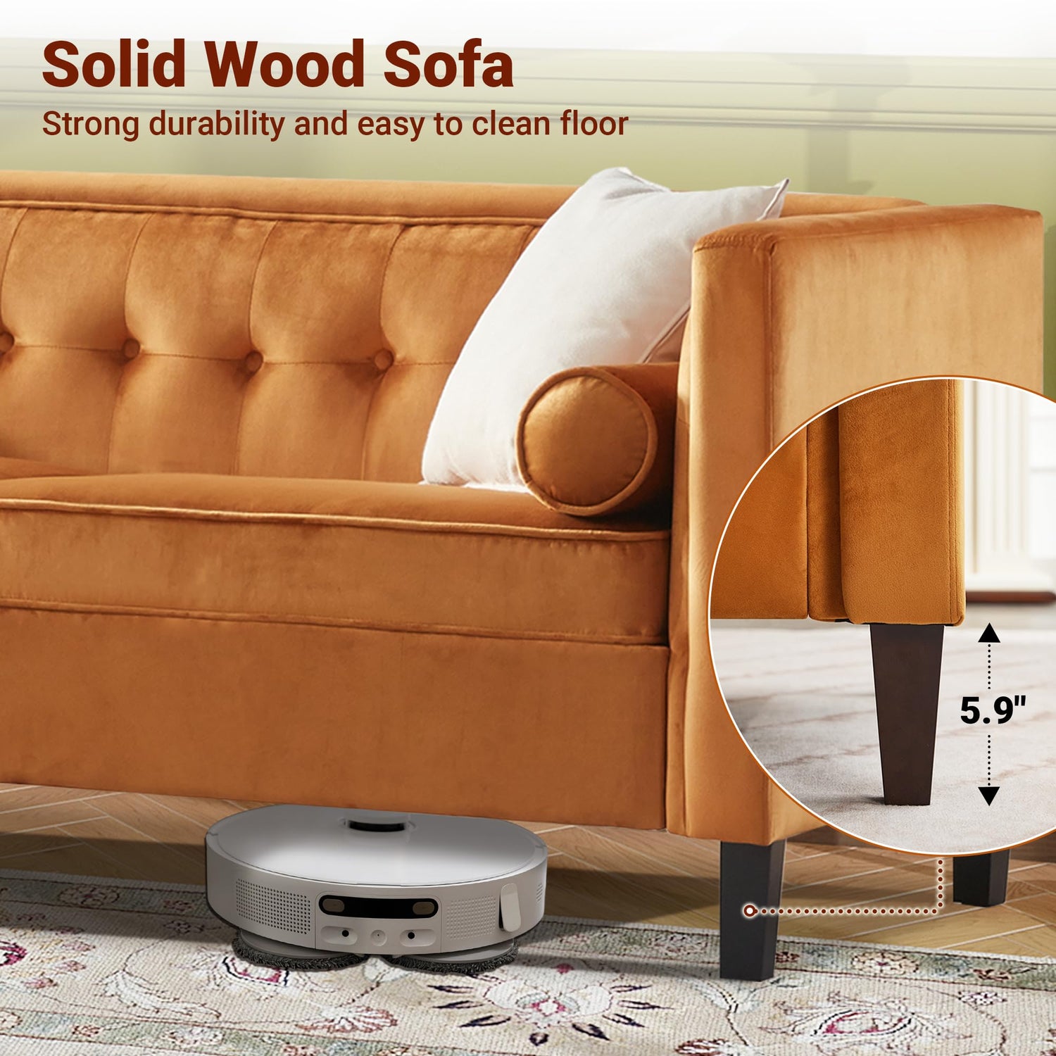 Dreamsir 78'' W Velvet Sofa, Mid-Century Love Seats Sofa Furniture with Bolster Pillows, Button Tufted Couch for Living Room, Tool-Free Assembly (Ginger)