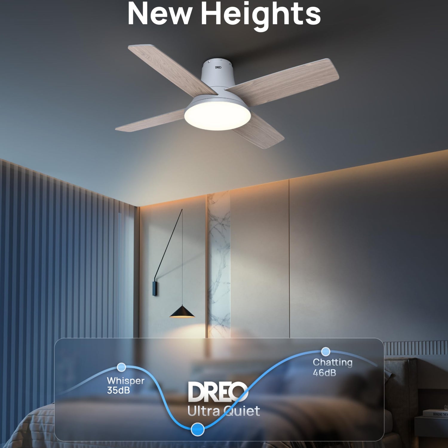 - Quiet Performance: DREO's brushless DC motor ensures noise levels are less than a whisper, providing smooth and efficient operation. This makes it the perfect ceiling fan for bedrooms, or homes with babies.