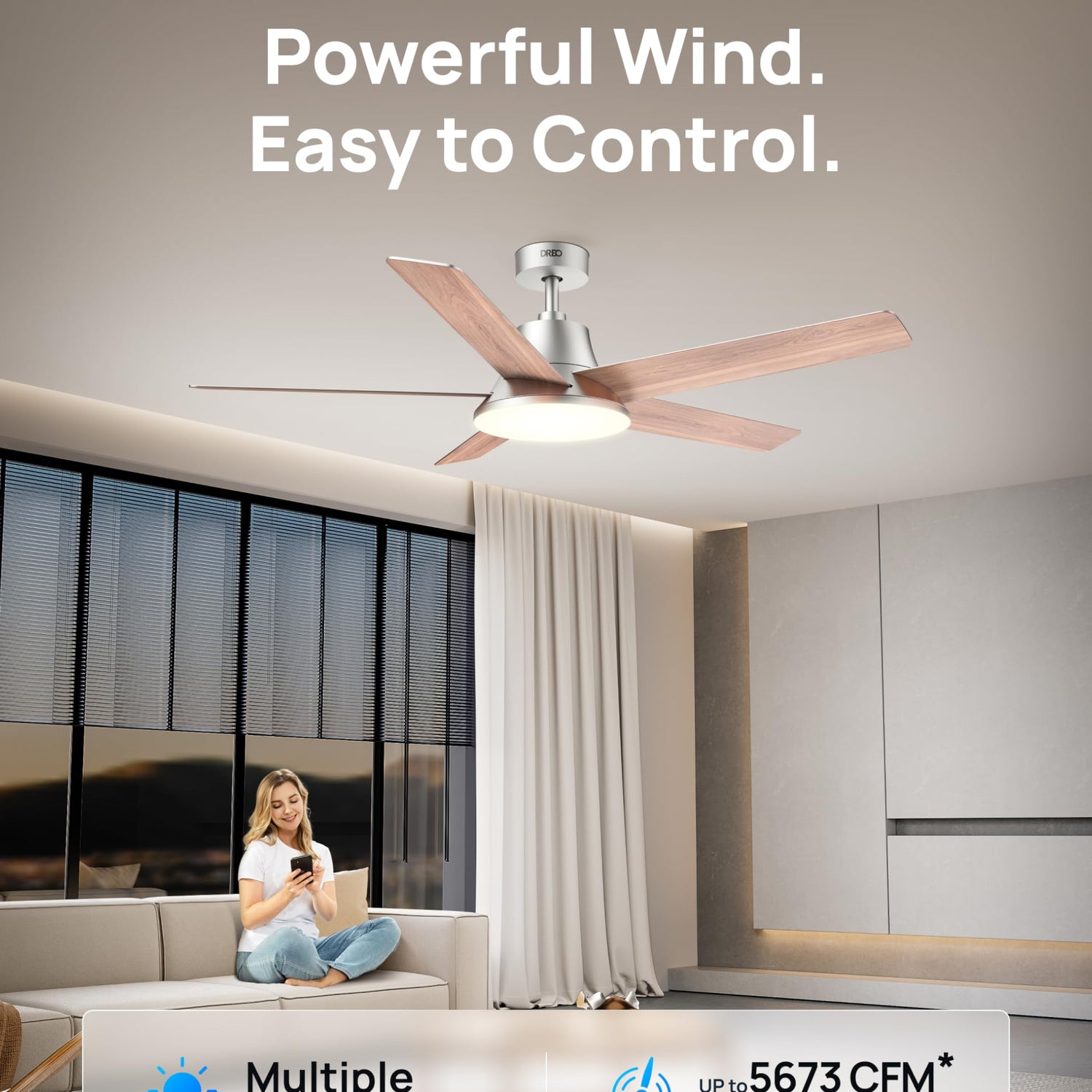 - Runs Smooth and Quiet: Dreo's Brushless DC Motor runs with less friction and optimized efficiency, achieving natural wind with noise levels lower than whisper sound, perfect to install in quiet places like bedrooms or living rooms.