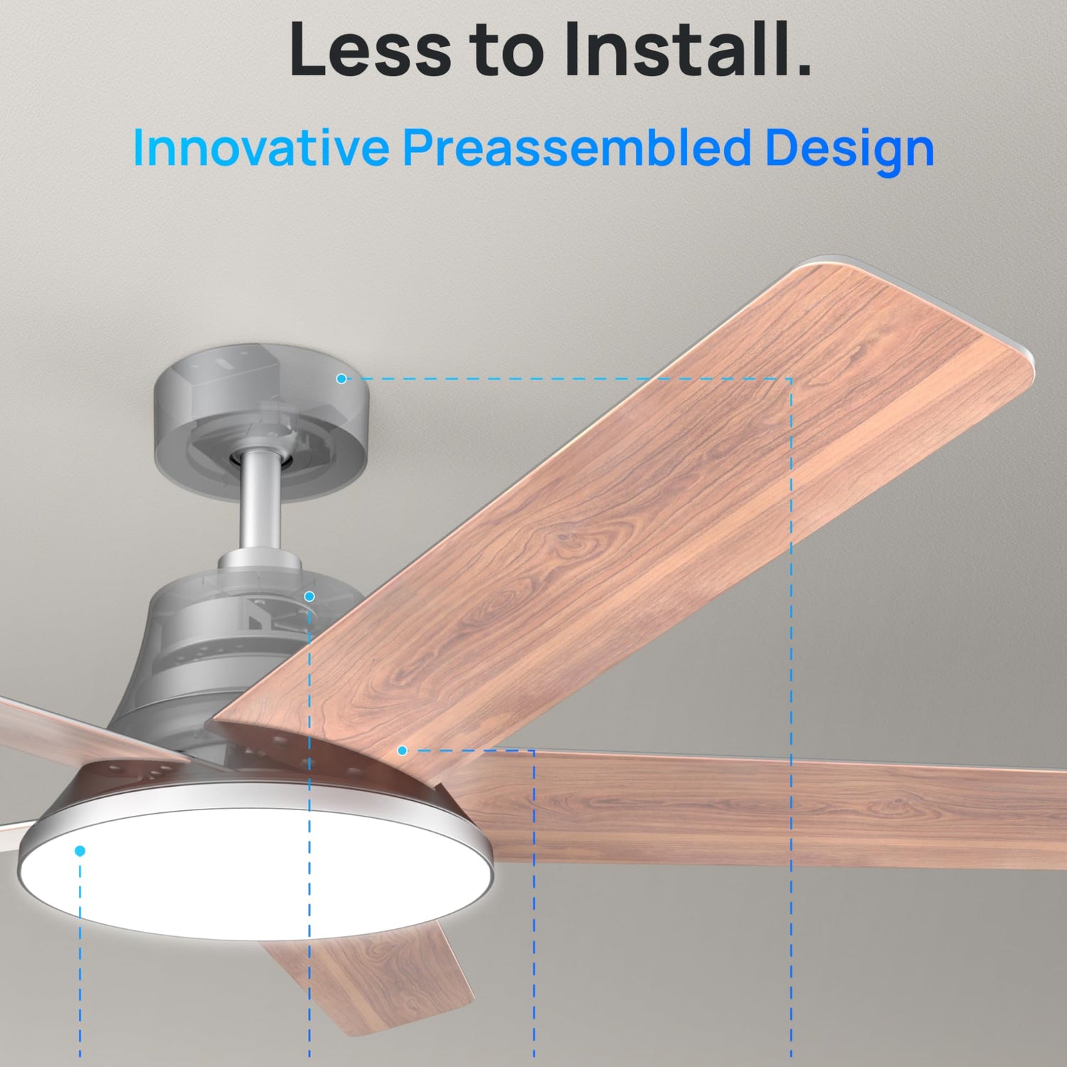 - Simplified Installation: Using pre-assembled design, you can complete the ceiling fan installation in just 4 simple steps. Saving your money and time! Tip: The installation video on the product page can serve as your reference.