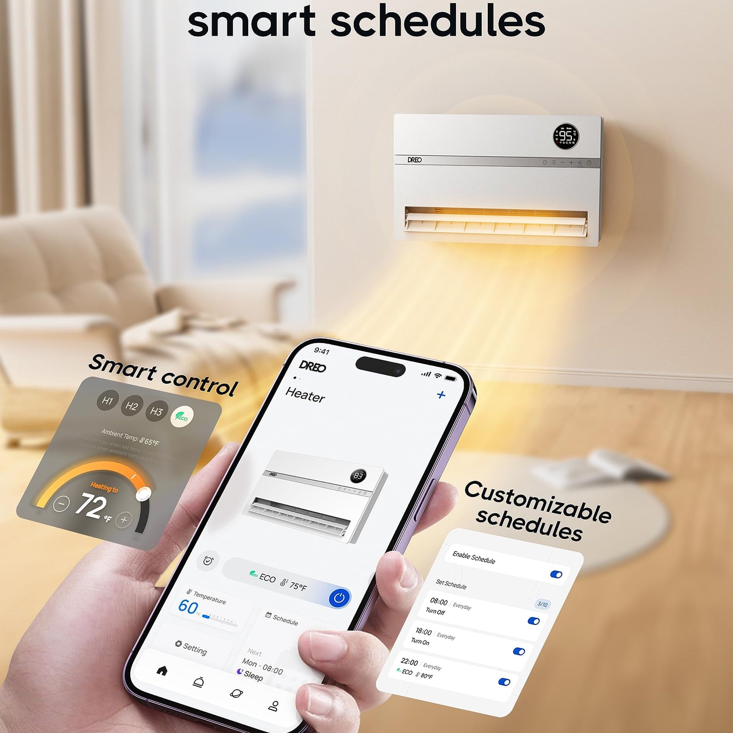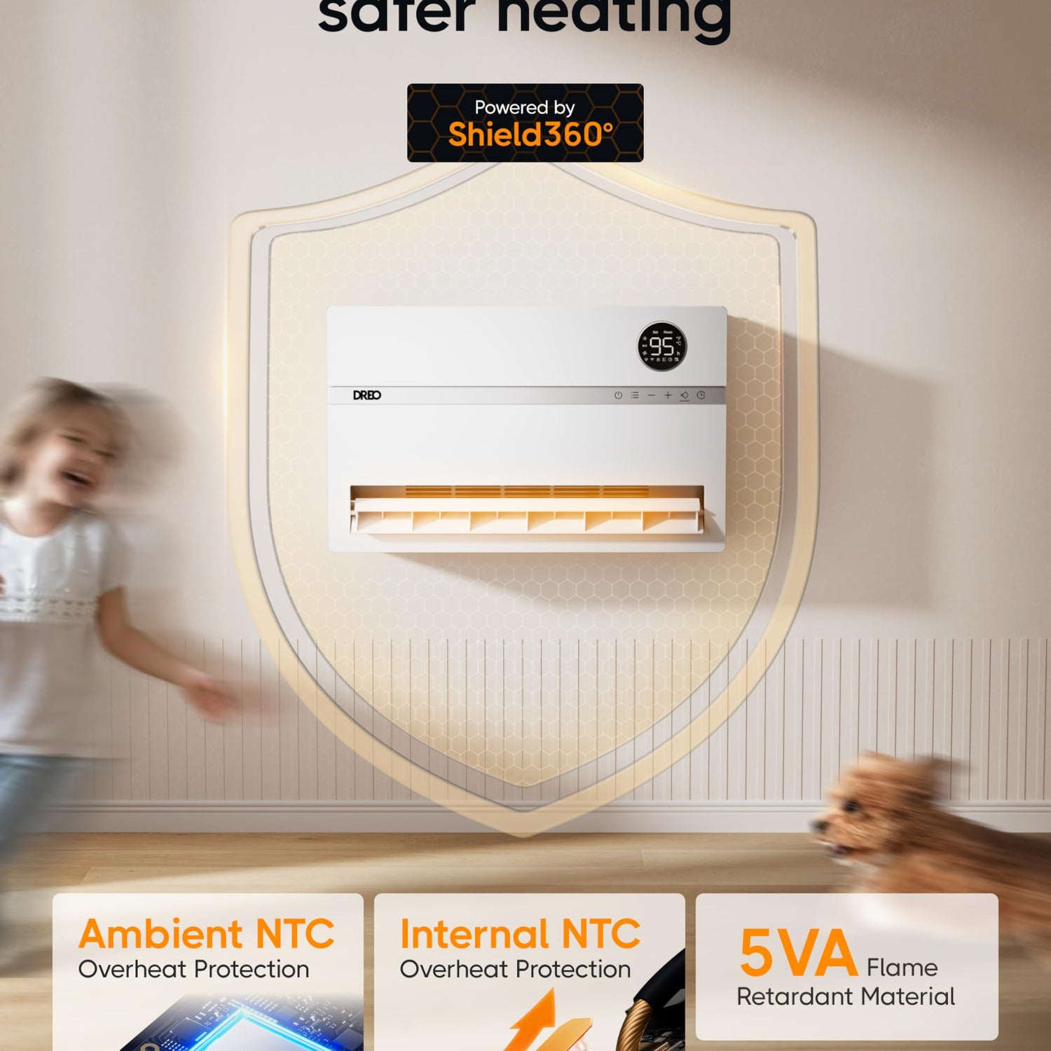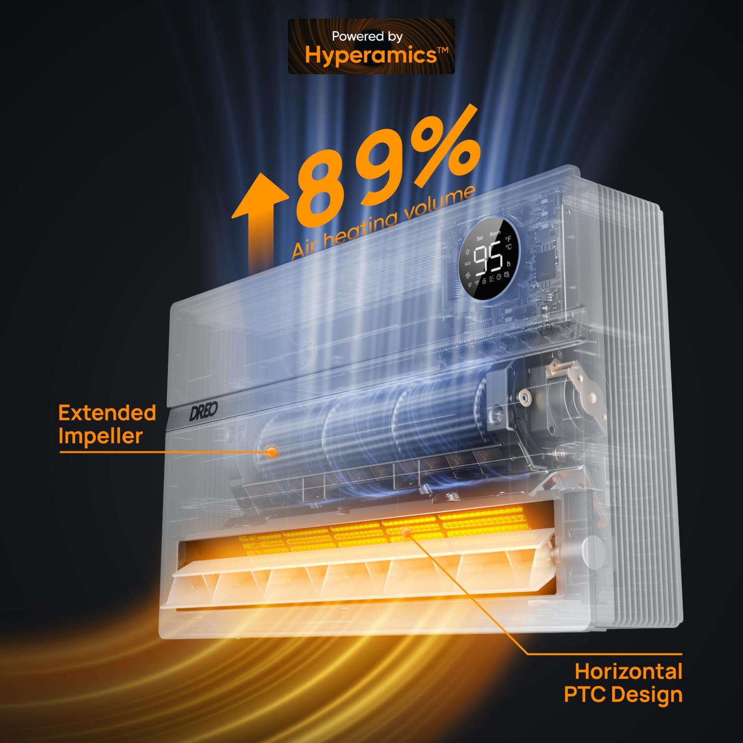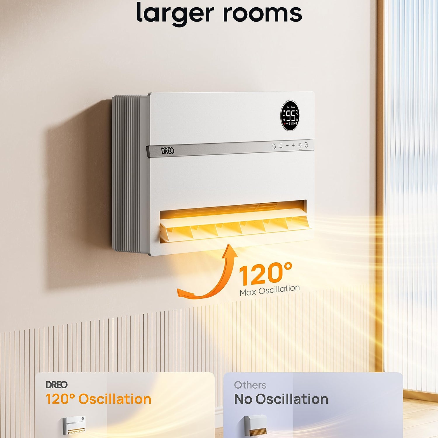 - Widespread Warmth: Dreo's 120° wide oscillation heating distributes warm air evenly from top to bottom, helping to bring fast heat to every corner of your room more efficiently than regular wall-mounted heaters.