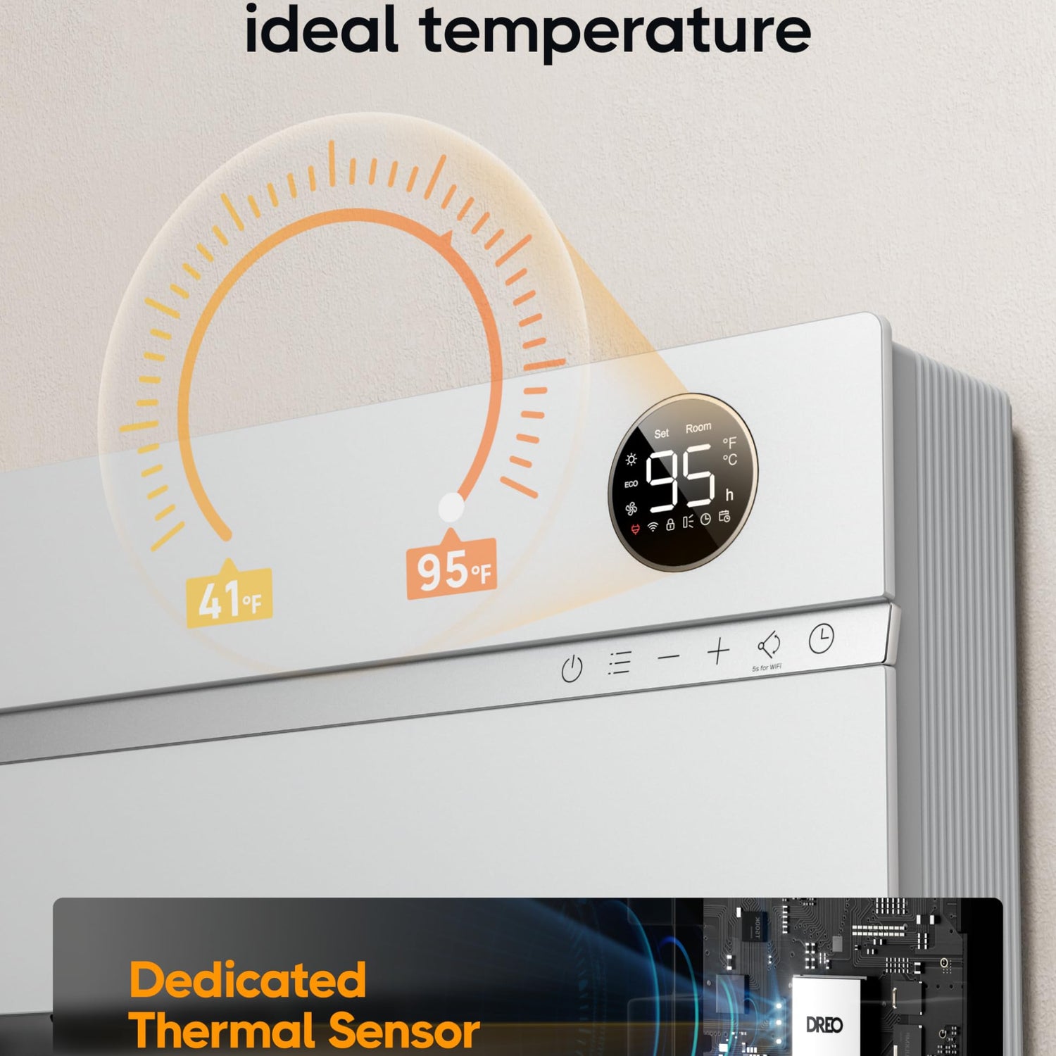 - Fast and Accurate Temperature Control: Set the room temp as you like, choose from 41 to 95°F range with an unprecedented 1°F accuracy. Dreo's PTC ceramic space heater brings fast and steady heating for an exceptional comfort experience.