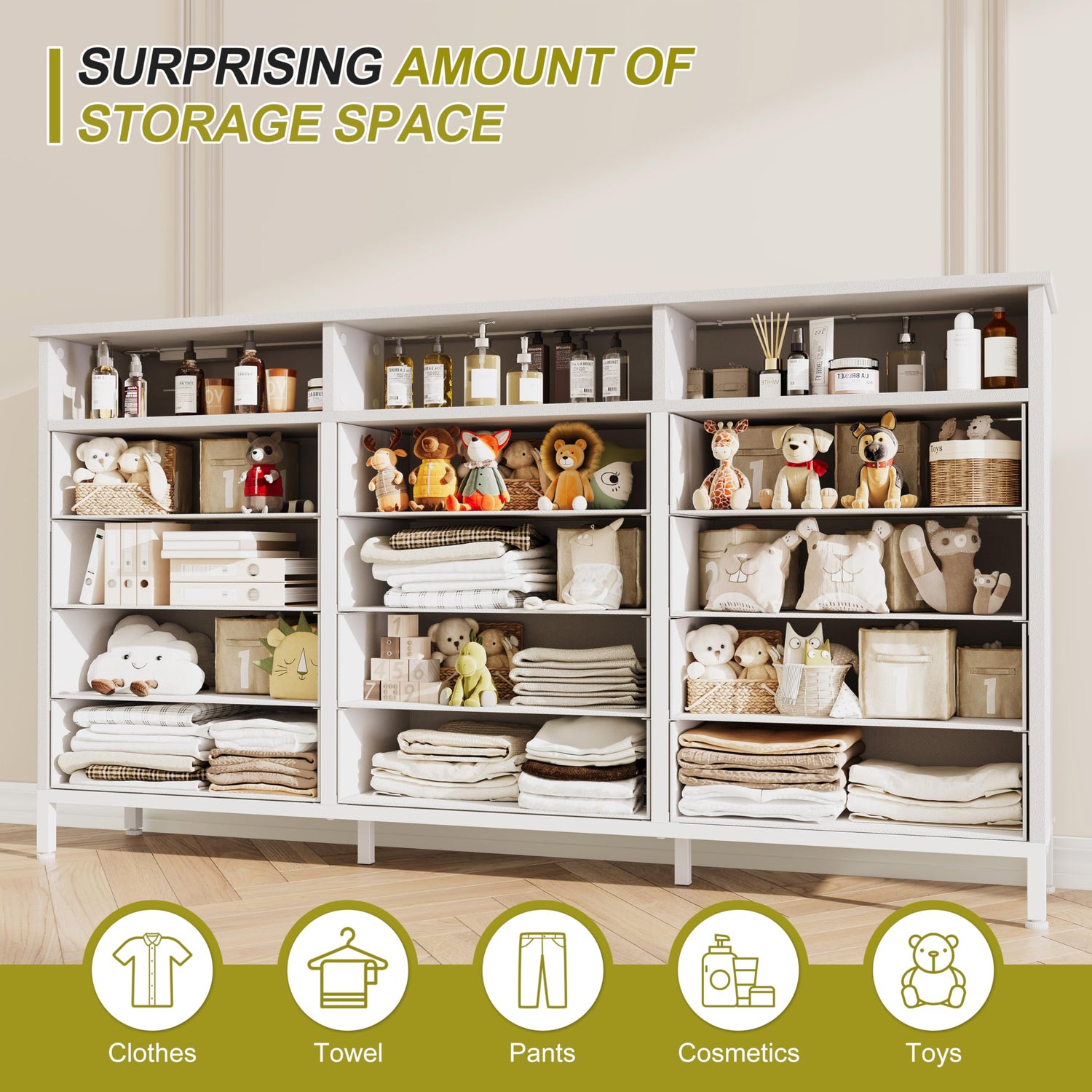 - Dresser for Bedroom- SOOWERY 12-drawer dresser provides ample storage space for your bedroom, kidsroom, guest room, closet, hallway or living room, keeping your clothes and essentials organized and easily accessible. The dresser includes three top wooden storage cubbies, providing open storage options