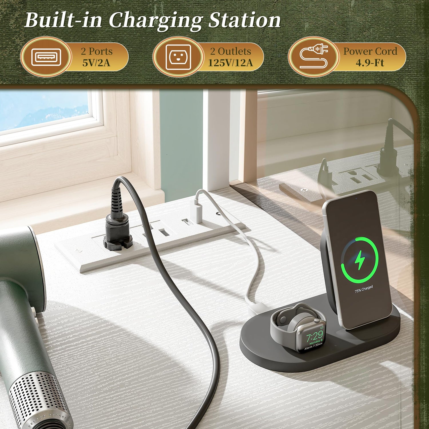 - 【 Built-in charging Station 】No more anxiety about finding a place to charge your devices! This bedroom dresser comes with an integrated power station, including 2 AC outlets and 2 ports. With this entertainment center, you can charge your TV, sound system, mobile phone, laptop and other small household appliances—no extra chargers required
