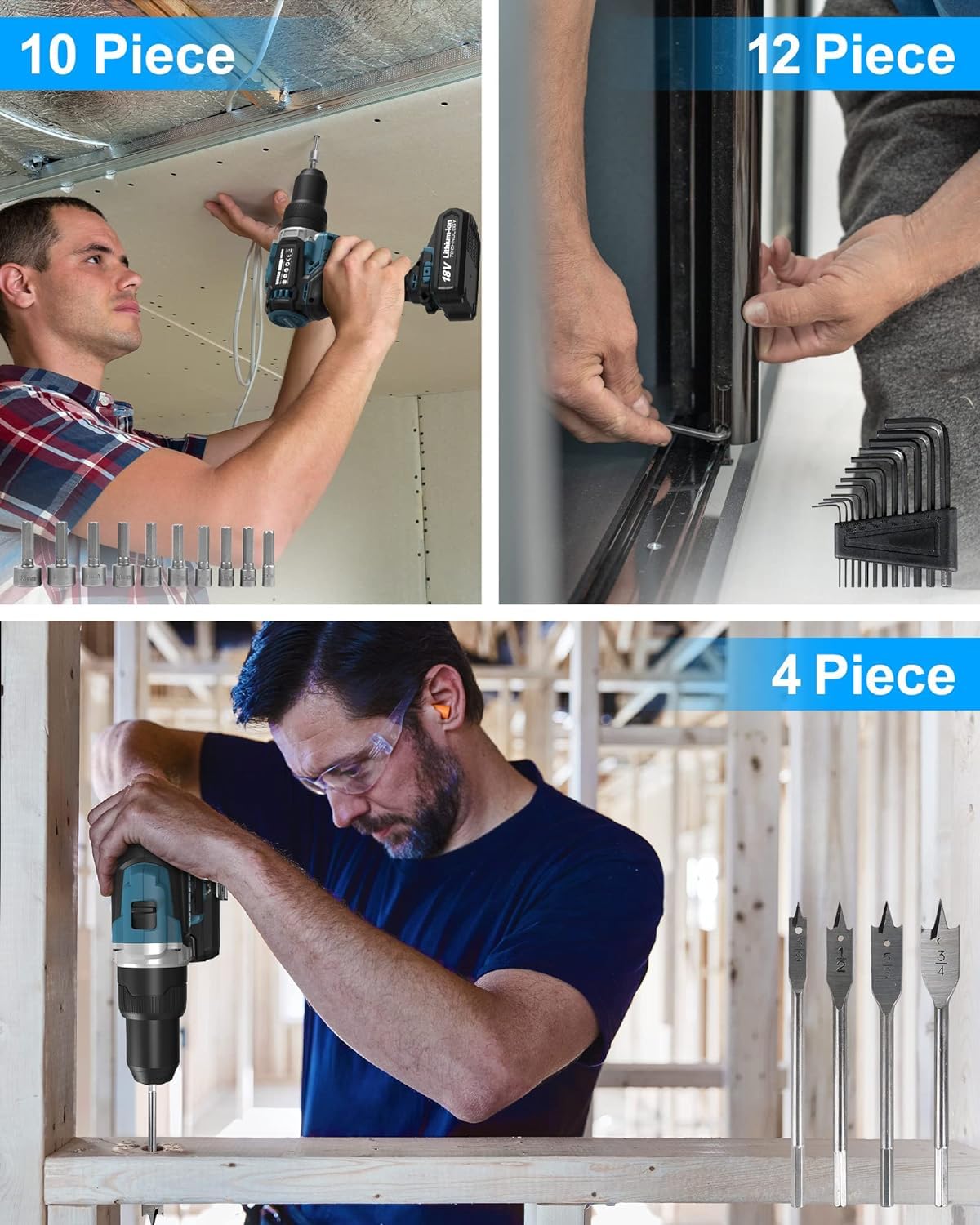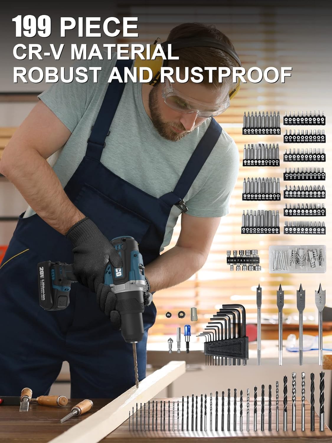 - VERSATILE APPLICATIONS:Suitable for all brands of power tools / convenient for furniture assembly, DIY projects etc. Drill set and bit set for all handheld and stationary corded or cordless drills and cordless screwdrivers etc