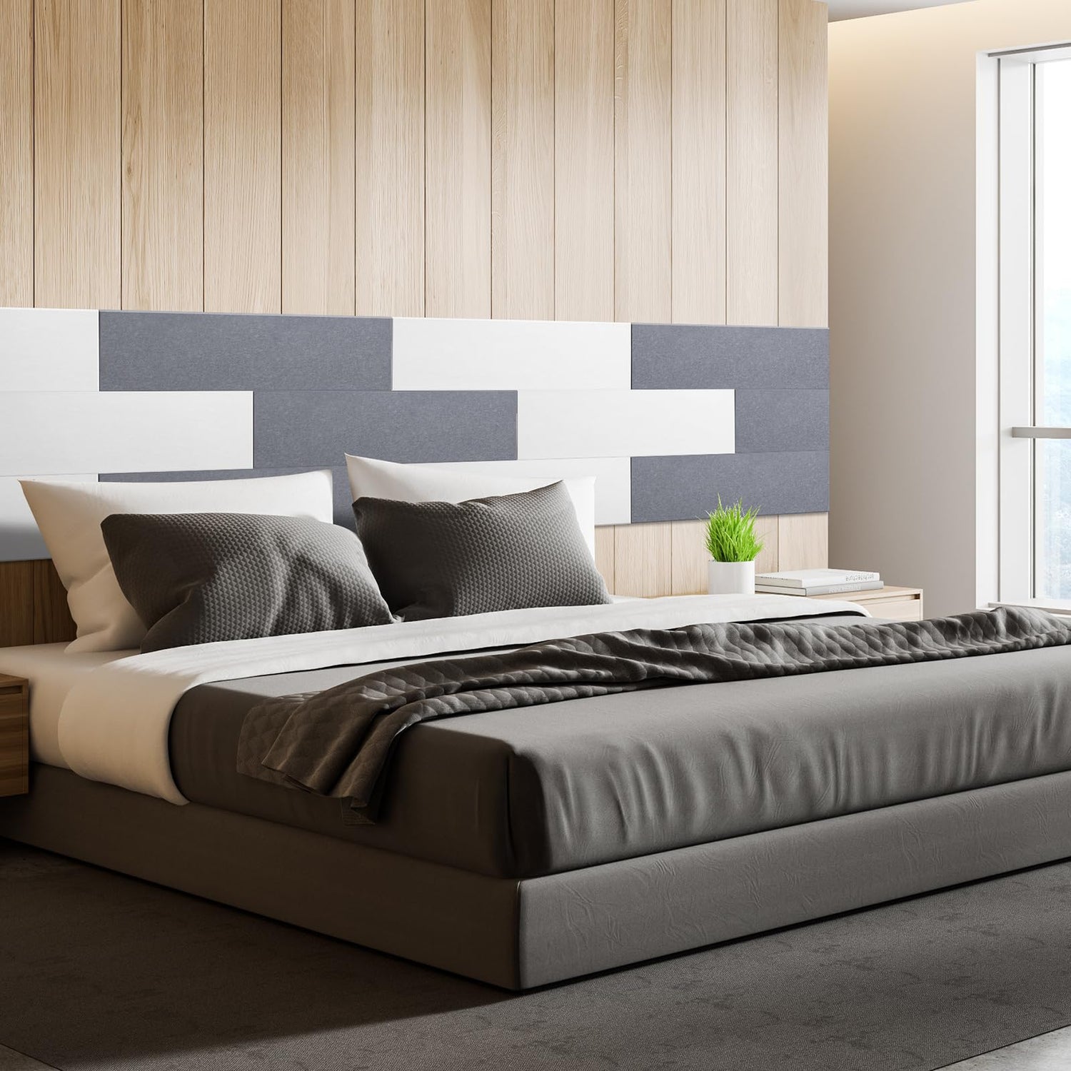 DrKlang 6 Pack Acoustic Panels, 47.2" x 11.8" Decorative Felt Wall Tiles, Wall and Ceiling Acoustical Treatment Tiles, Great to Reduce Echo and Noise for Home and Office - African Grey