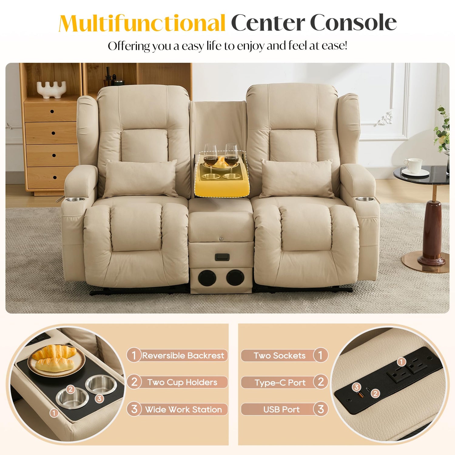 - Easy to Assemble: Everything is in the box and there is no tools needed! The installation of the 2 seat recliner sofa is very simple, which takes about 20 minutes for each recliners
