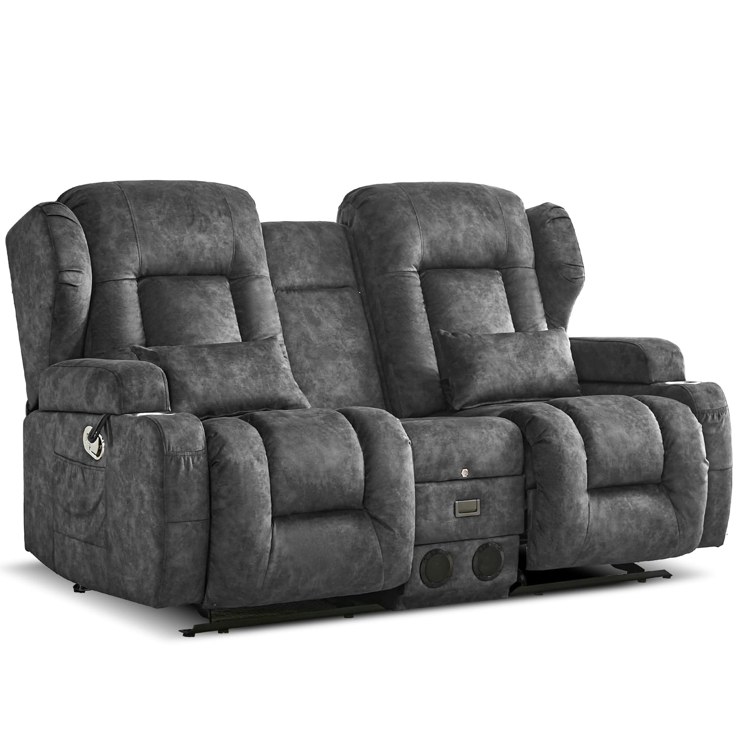 DRMBOOK Loveseat Rocker Recliner Sofa, Velvet Fabric Double Reclining Couches with Console, Manual Reclinable Dual Recliner Chair, RV Movie Theater Seating with USB/Bluetooth Speaker (Velvet Grey)