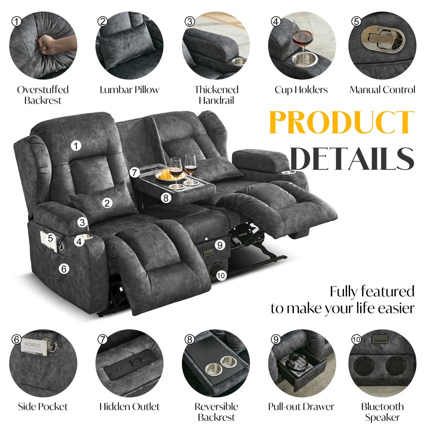 - Easy to Assemble: Everything is in the box and there is no tools needed! The installation of the 2-person recliner sofa is very simple, which takes about 20 minutes for each loveseat recliners