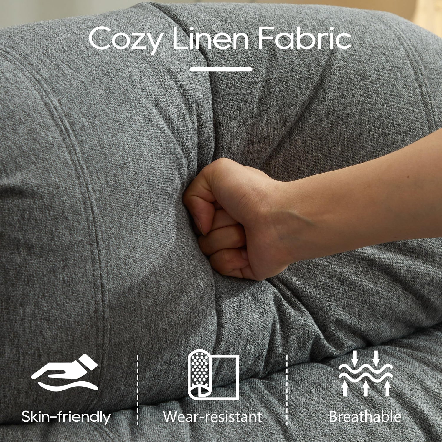 - High Quality Double Recliner: Crafted with durable wooden, metal frame, high-density cotton and premium linen, ensuring breathability and easy maintenance, providing you with ultimate comfort. Each sofa supports up to 350 lbs