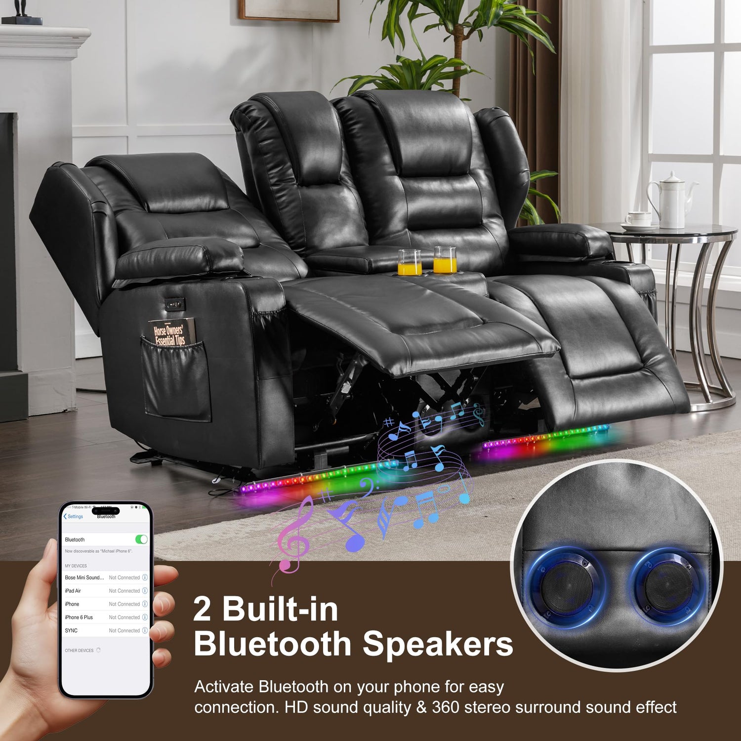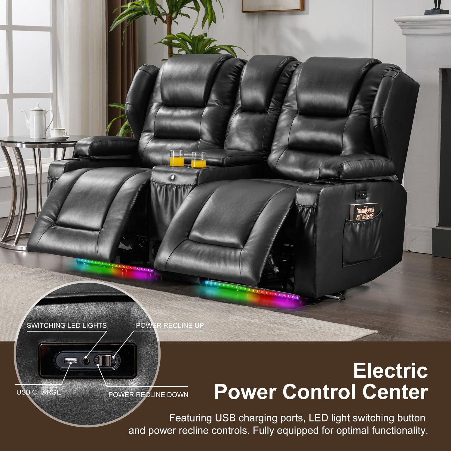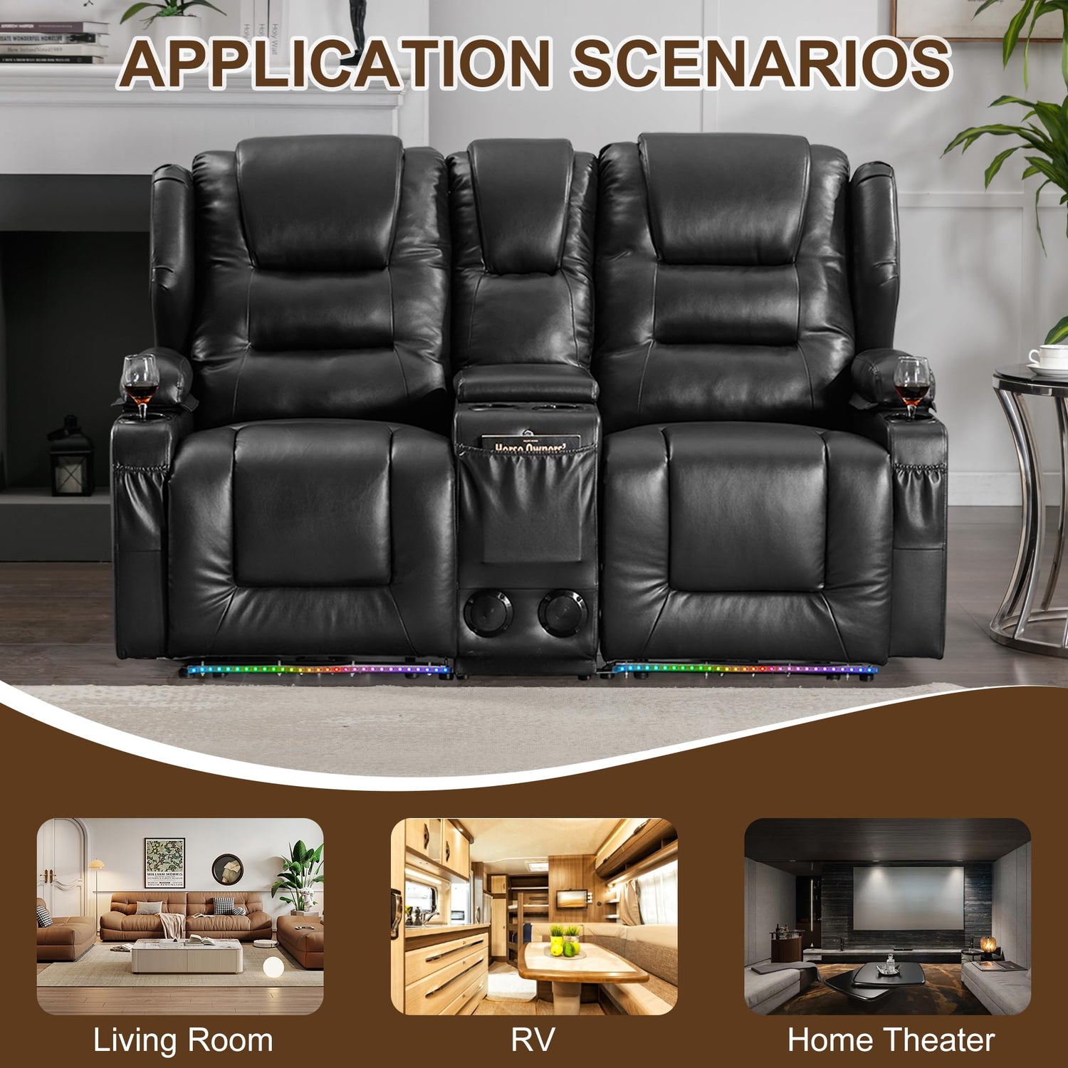 - Comfy Theater Seating Recliner: This leather loveseat recliner boasts overstuffed padding for ultimate comfort. Featuring a classic wingback design with luxurious details, it's perfect for your living room, bedroom, home theater,motorhome or RV