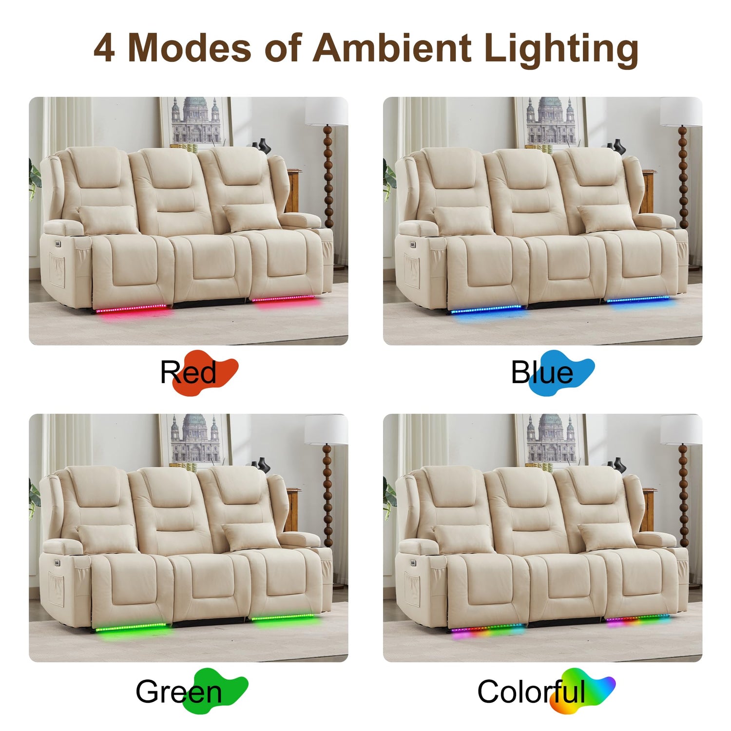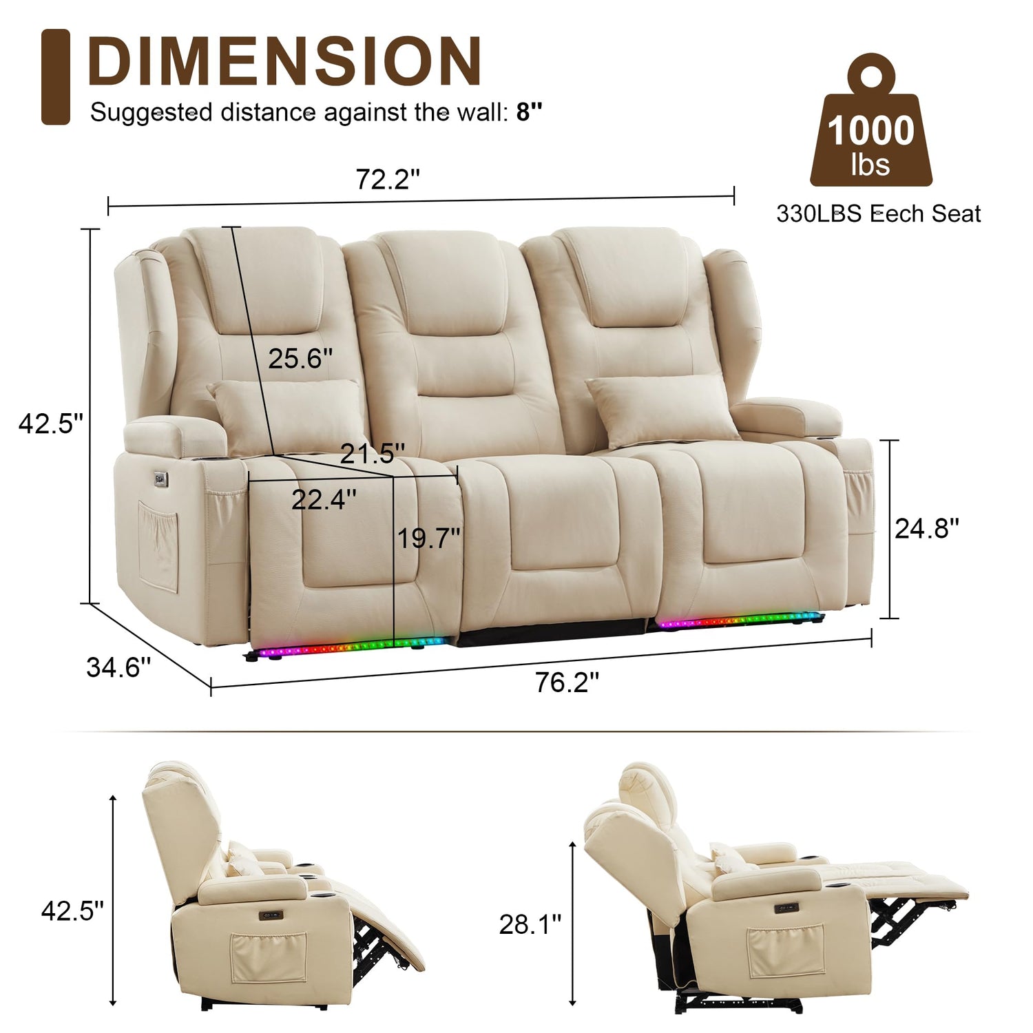 - High Quality Recliner Sofa: Powered by a TUV-certified motor mechanism. The metal frame has been tested 25,000 times, the motor has been tested 10,000 times. Crafted with solid wood and a steel frame, each sofa supports up to 350 lbs