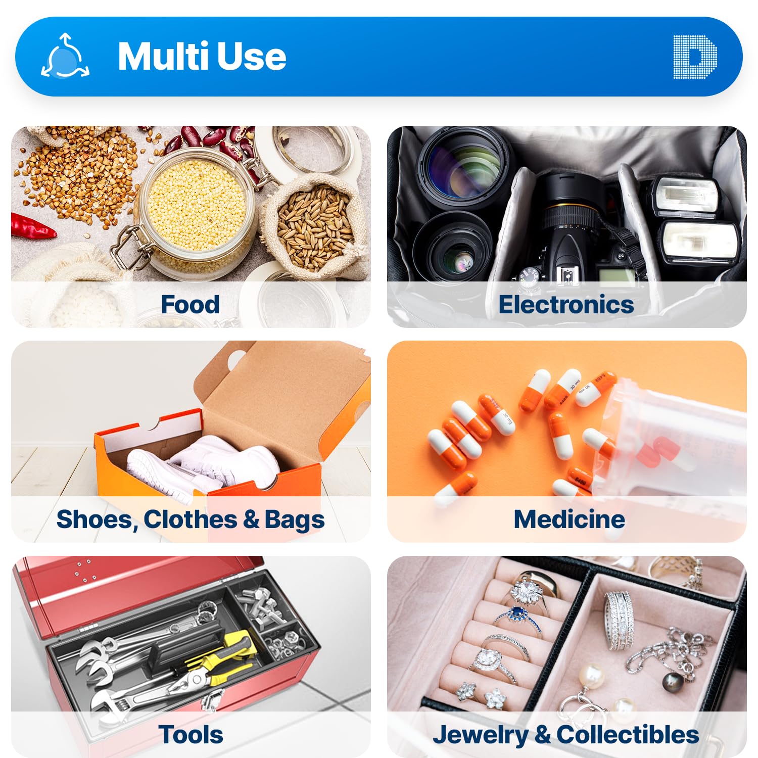 - [WARRANTY INFORMATION] Our products are supported with new replacement or full refund with no time limits if they don’t work. [HOW TO USE] Place your items and silica gel packet in a tightly sealed container to protect your items from moisture damage; Foods, Medications, Vitamins, Seeds, Nuts, Snacks, Cookies, Spices, Pet Foods, 3D Filaments, Safes, Gun, Ammo, Canister, Collectables, Jewelry, Documents, Clothes, Cosmetics, Books, Bas, Decoration, Camera, Watch, Electronics, Shoes, and Valuables