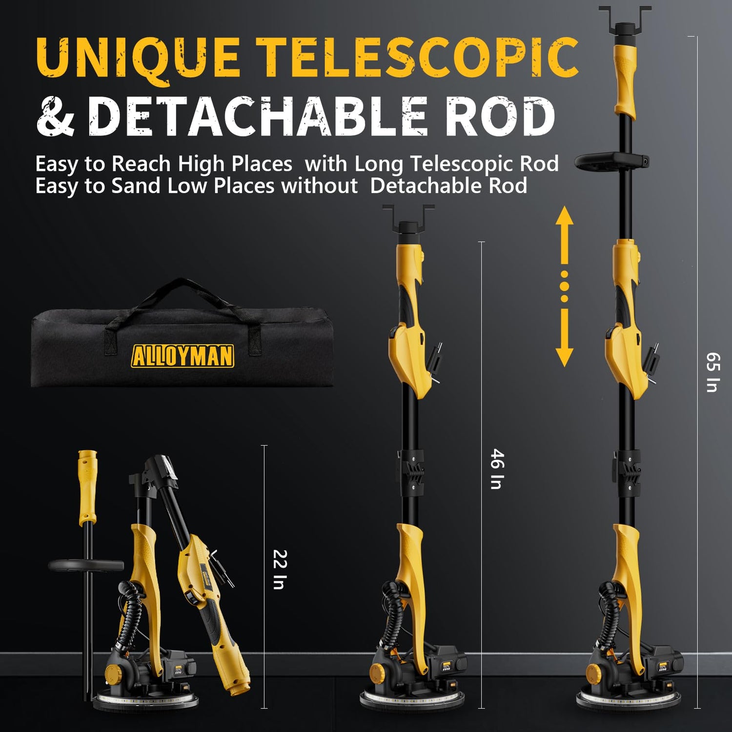 - 【RETRACTABLE HANDLE】With a retractable handle extending from 1.1m to 1.65m, and an auxiliary handle for better control, this ceiling sander lets you reach high corners and ceilings without needing a ladder.