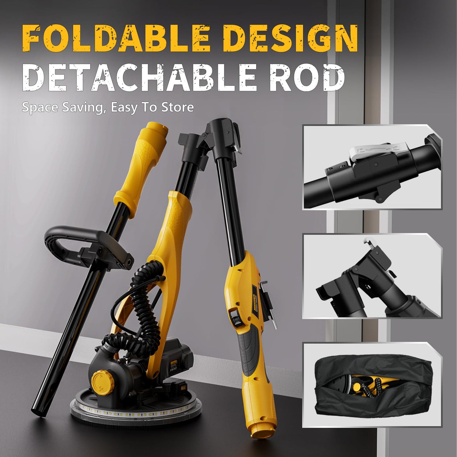 - 【FOLDABLE DESIGN】Our drywall sander features a foldable body to save storage space, and comes with a convenient carrying bag for easy storage and portability. The dust collection hose can also connect to your own vacuum for enhanced dust management.