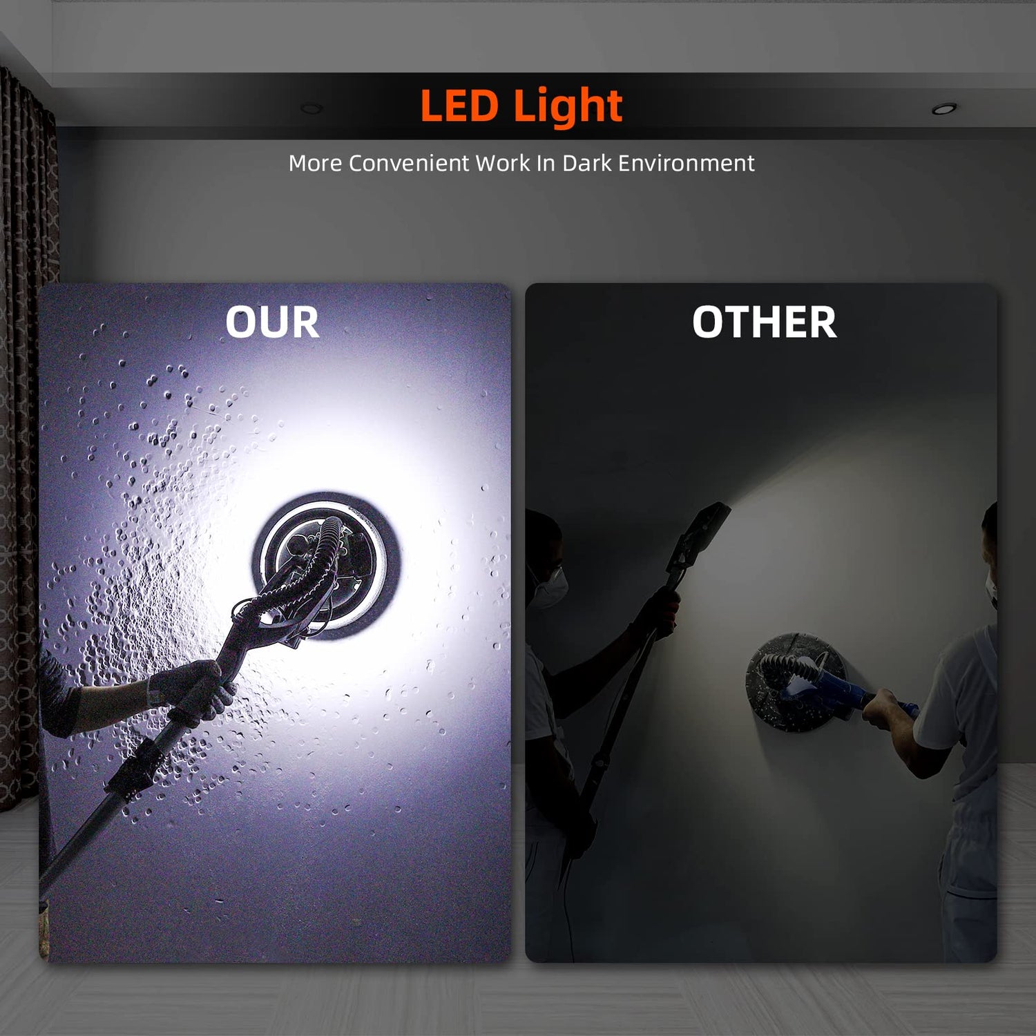 - 【Surrounding LED Light】Double-deck LED strip lights make this drywall sander is also suitable for dark workplace. The light is soft and not dazzling, and it will not hurt your eyes even if you work for a long time.