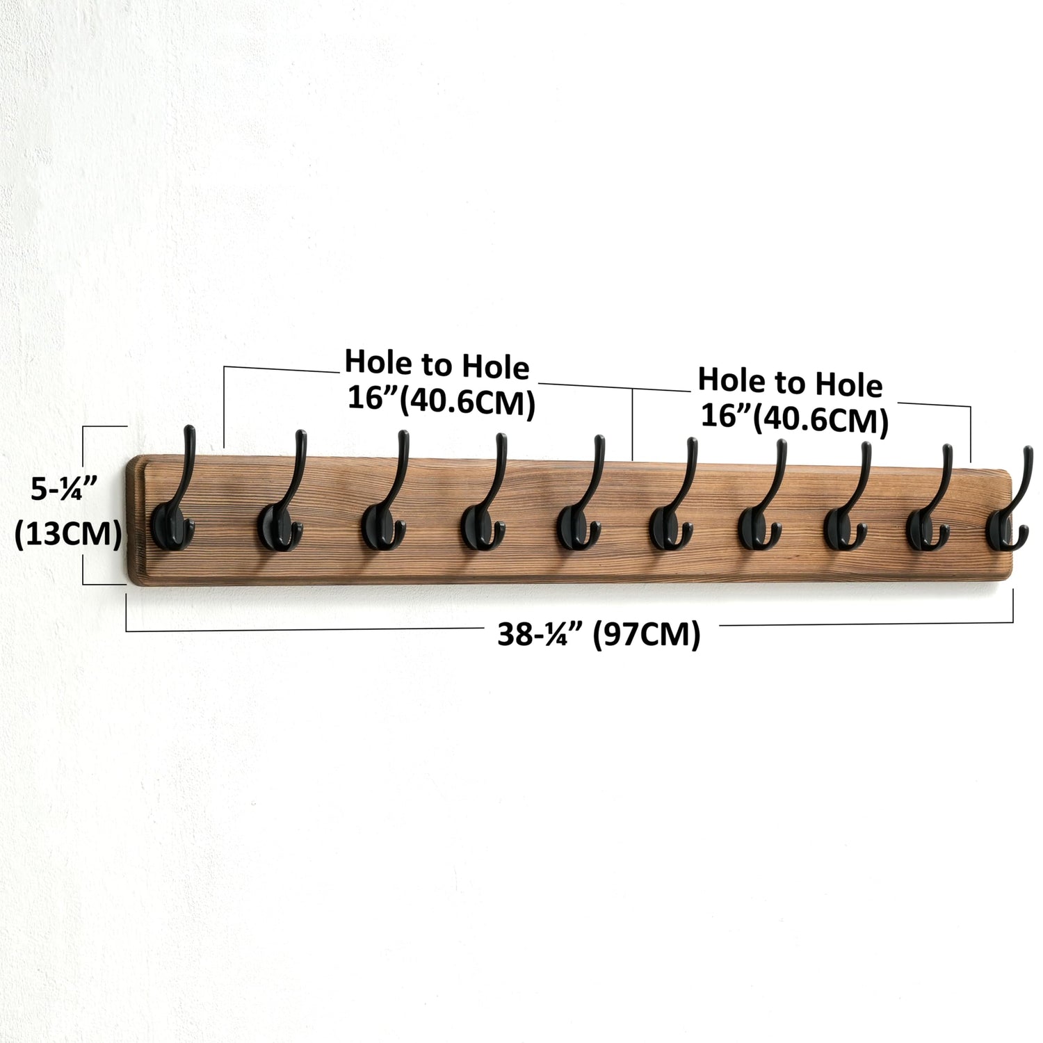 - 【38” LONG & AMPLE HANGING SPACE:】 Boasting a 38-1/4” long wood board with 10 dual hooks, this wall coat hanger offers an impressive amount of hanging space.