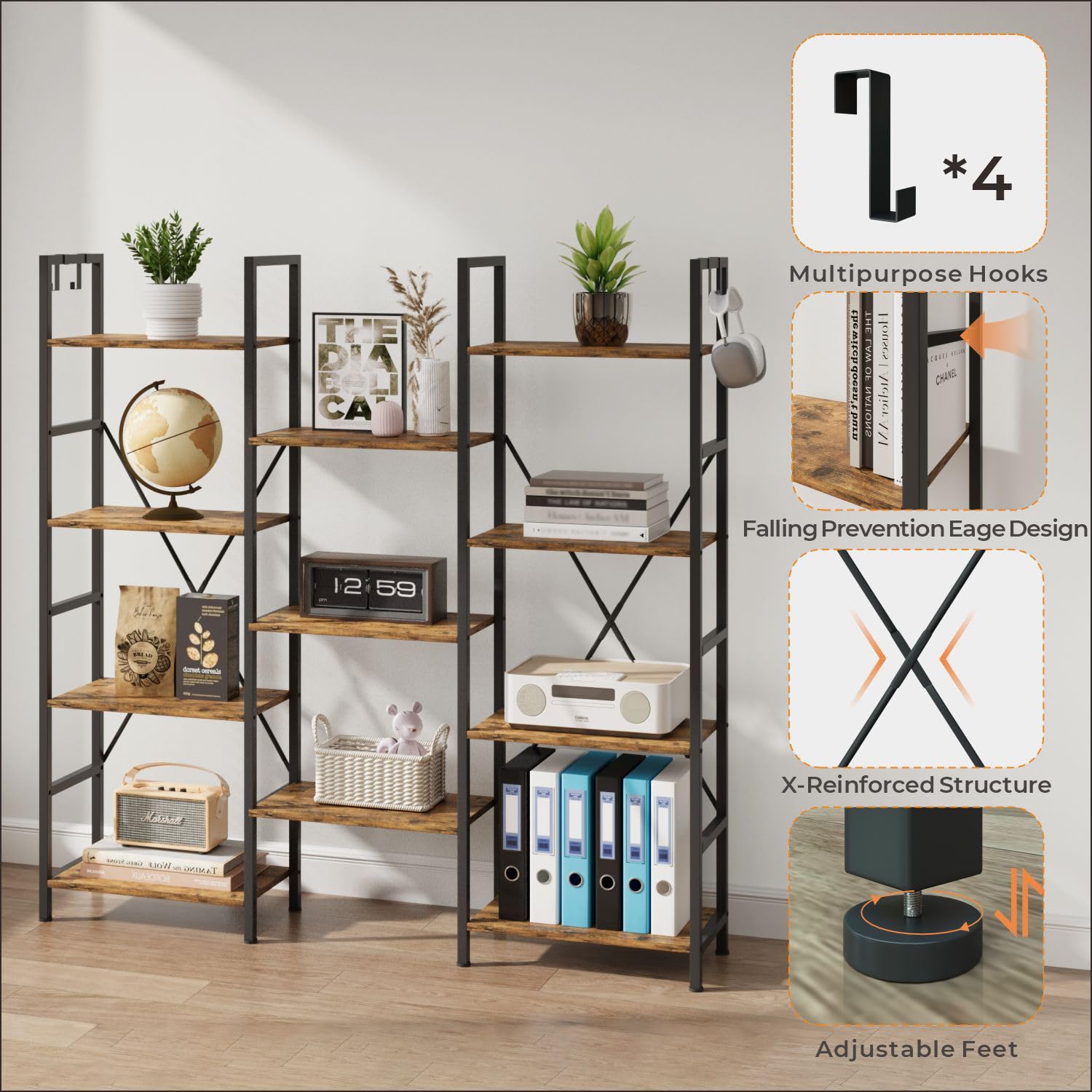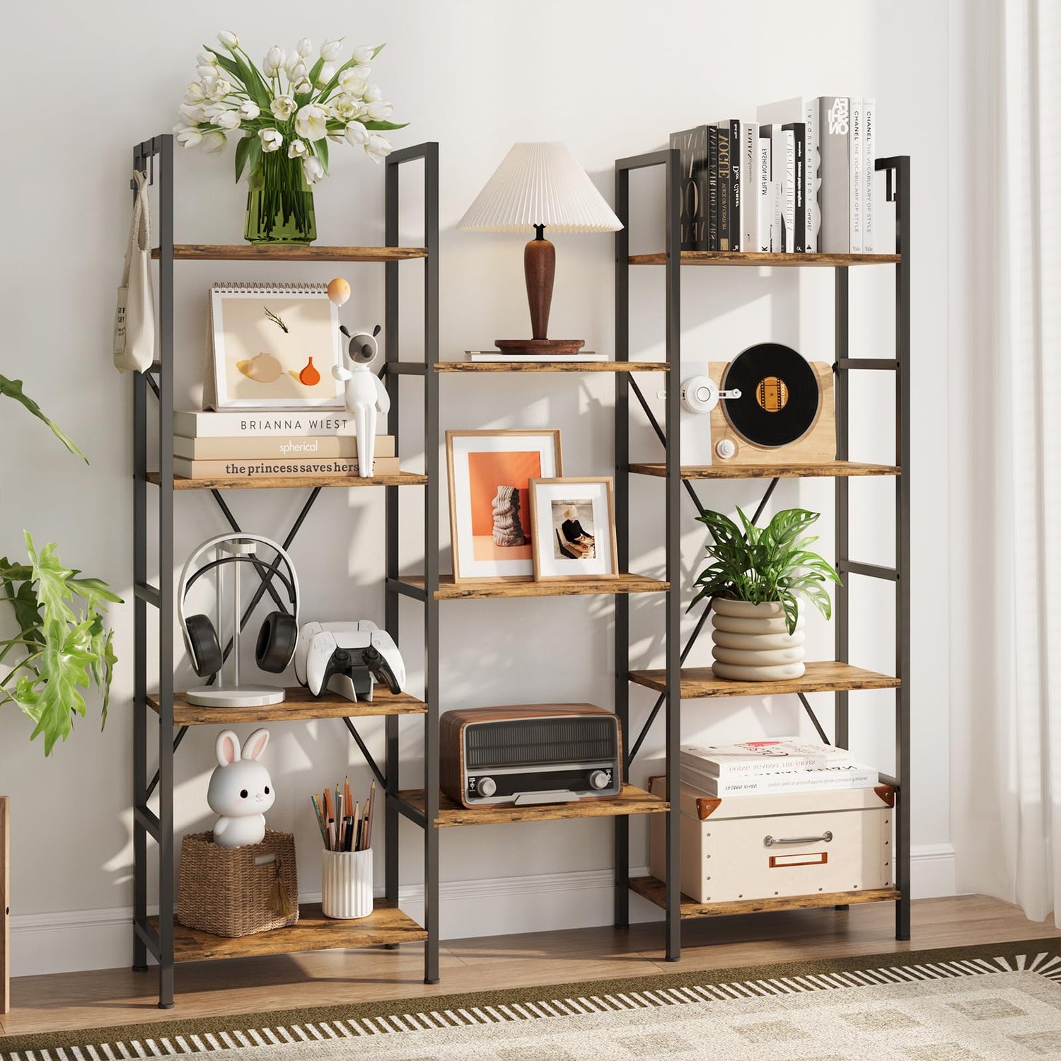 DSNAPE Triple 4 Tier Bookshelf with 11 Open Book Shelves,Home Office Bookcase Shelf Heavy Duty Storage Organizer,55" H Industrial Display Shelves for Living Room,Kitchen Room,Flower Room,Rustic Brown