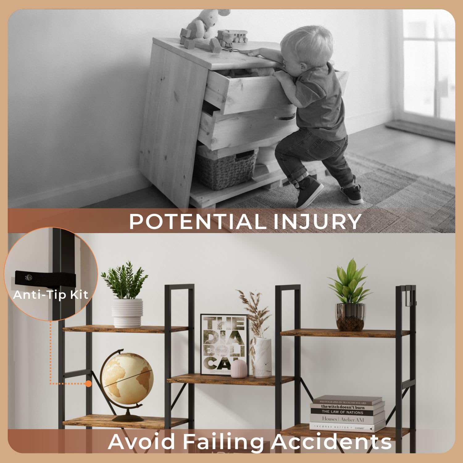 - 70lbs Extra Strong Shelves: Industrial bookshelf crafted with grade metal frames & premium particle boards, each display shelves holds 70lbs, even strong enough for an aquarium! The bookshelves come with Anti-Tip Kit so you can fasten them to the wall for support (Size: 49.5"L x 10.3"W x 55"H)