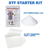 DTF Transfer Powder Film for Sublimation:500g/17.6oz White Digital Transfer Hot Melt Adhesive - 20pcs DTF Transfer Paper for All DTF and DTG Printers