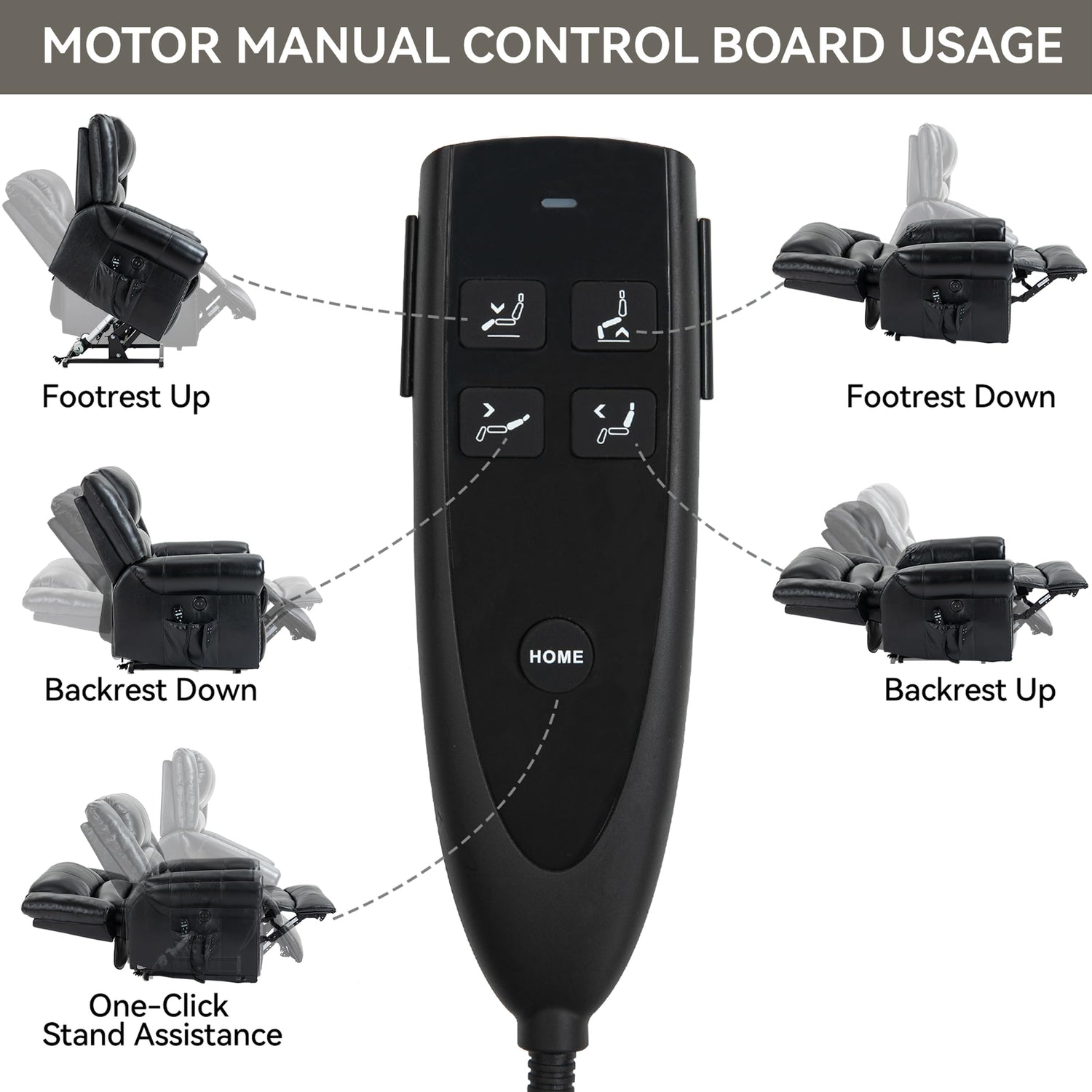 - Powerful Dual Motors: What’s the difference between the dual motors and the single motor for the lift chair? The dual motor recliner chair’s backrest and footrest can work independently, lifting and reclining more steadily, and its backrest can recline to 180° for comfortable sleeping or to any customized position you prefer for reading or watching TV. A professional control is included.
