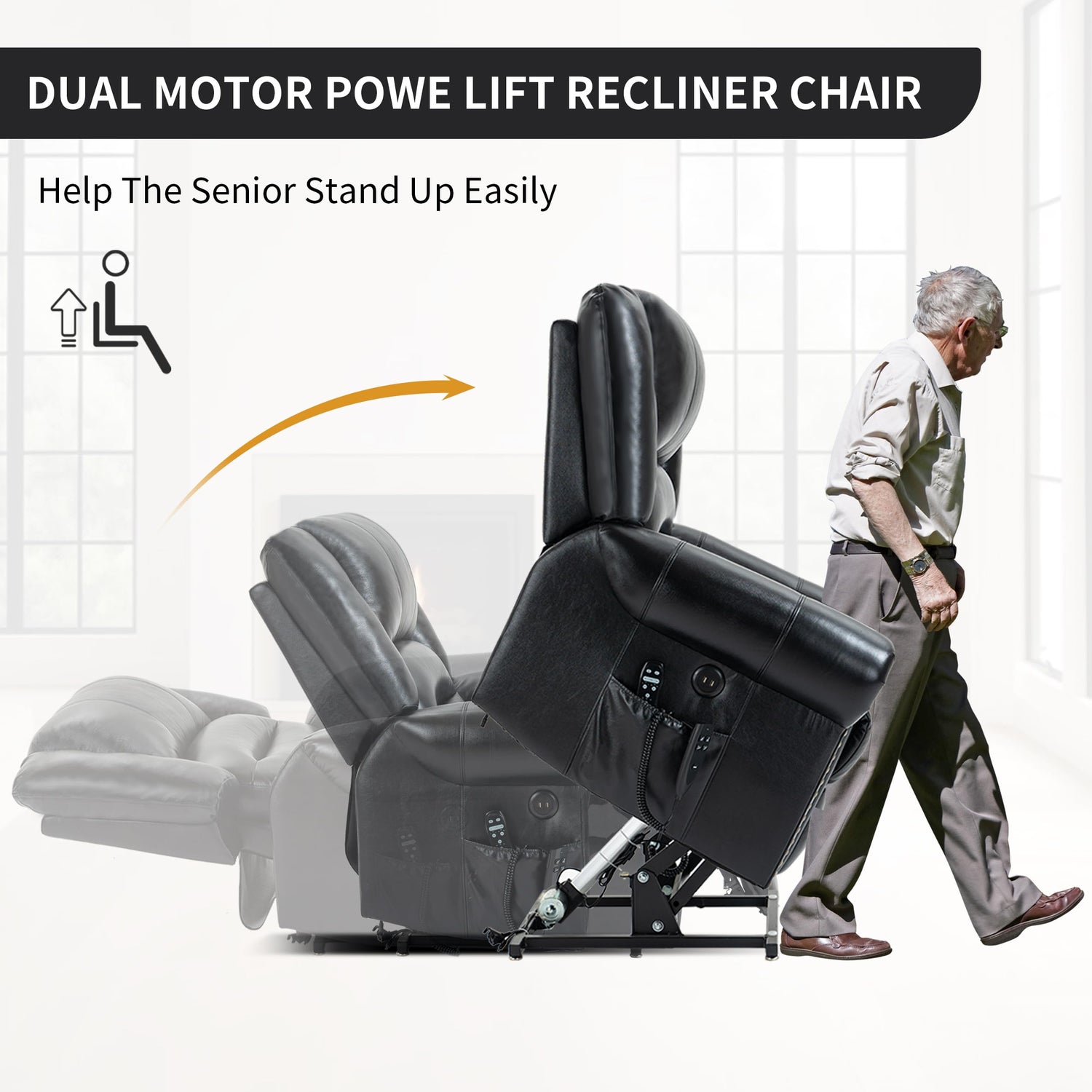 - Quality & Comfortable: The power lift recliner features soft, breathable leather upholstery that is high-end and gorgeous. The overstuffed sponge padding gives your full body a comfortable sense of wrapping. The sturdy wooden frame and durable steel base ensure that the chair can hold up to 380 pounds of weight and provide long-term use.