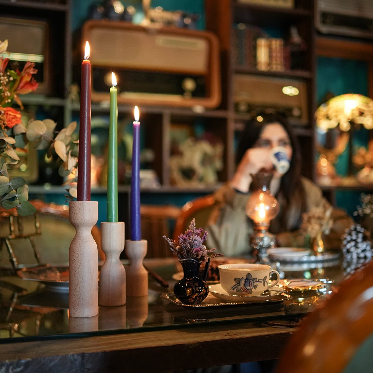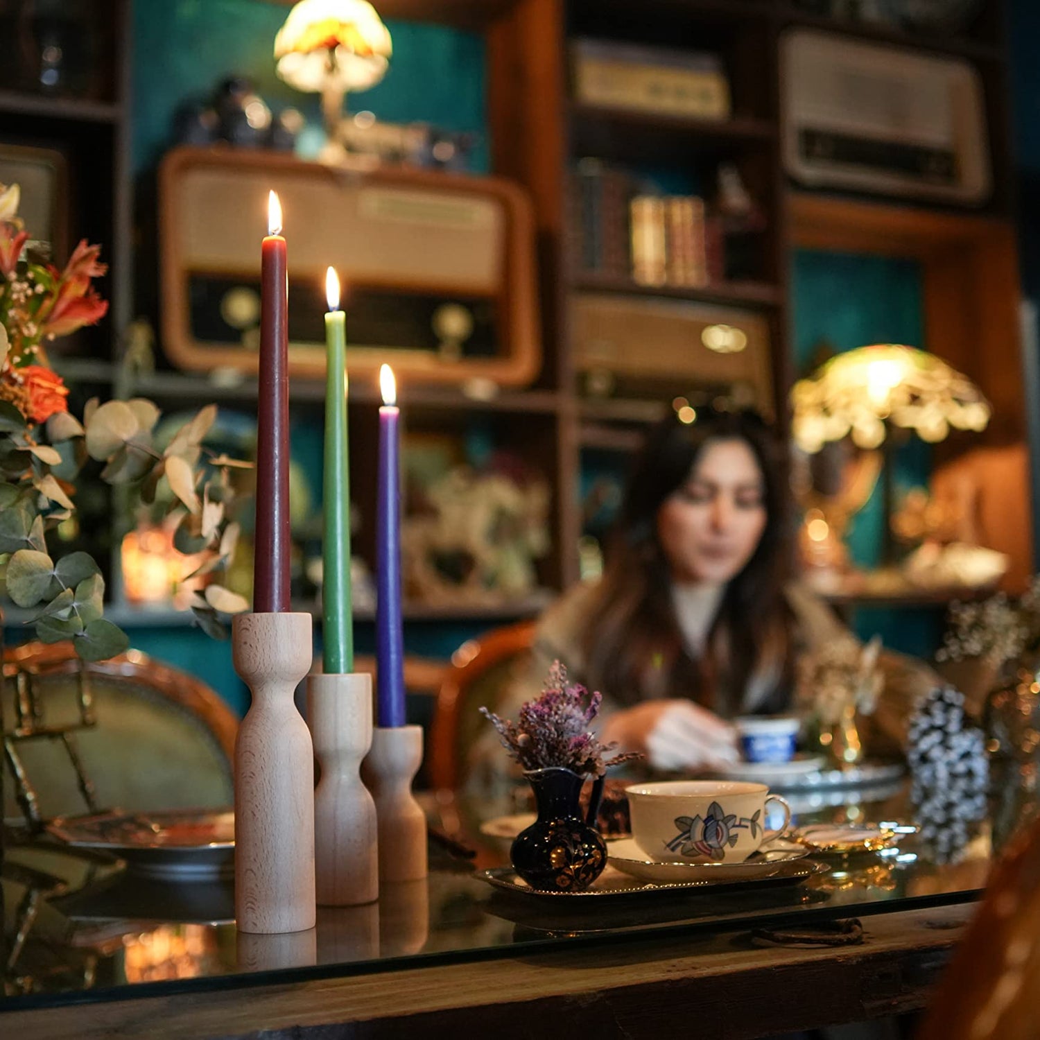 - NATURAL WOOD: Wooden Candlestick set is made of natural beech wood. It does not contain any preservative chemicals. It will appeal to your eyes thanks to its smooth surface and wood color.