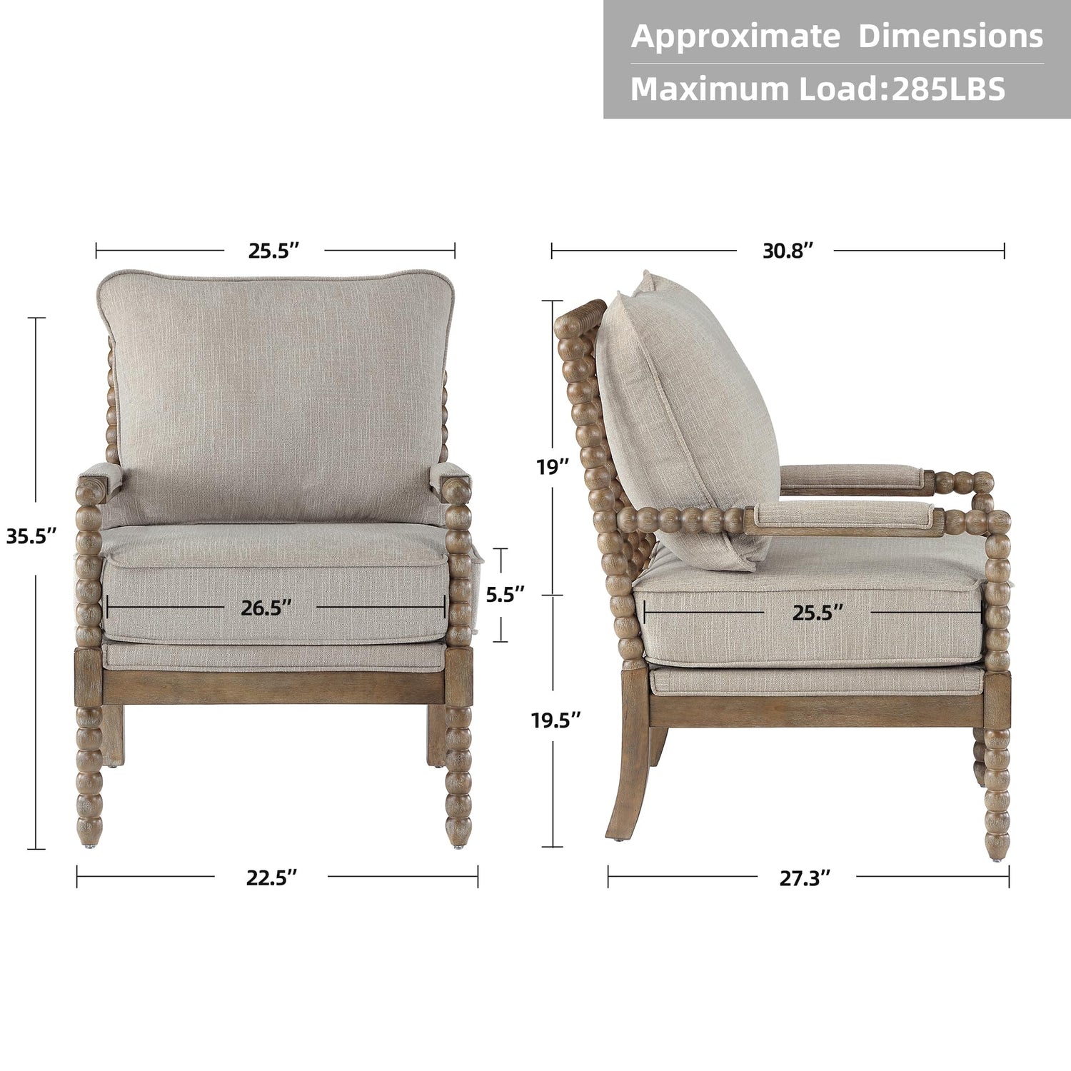 DUHOME Linen Fabric Spindle Accent Chair with Wood Frame,Modern Accent Chairs with Padded Spring Seat and Brushed White Base for Living Room Bedroom Farmhouse Home Office Belcony