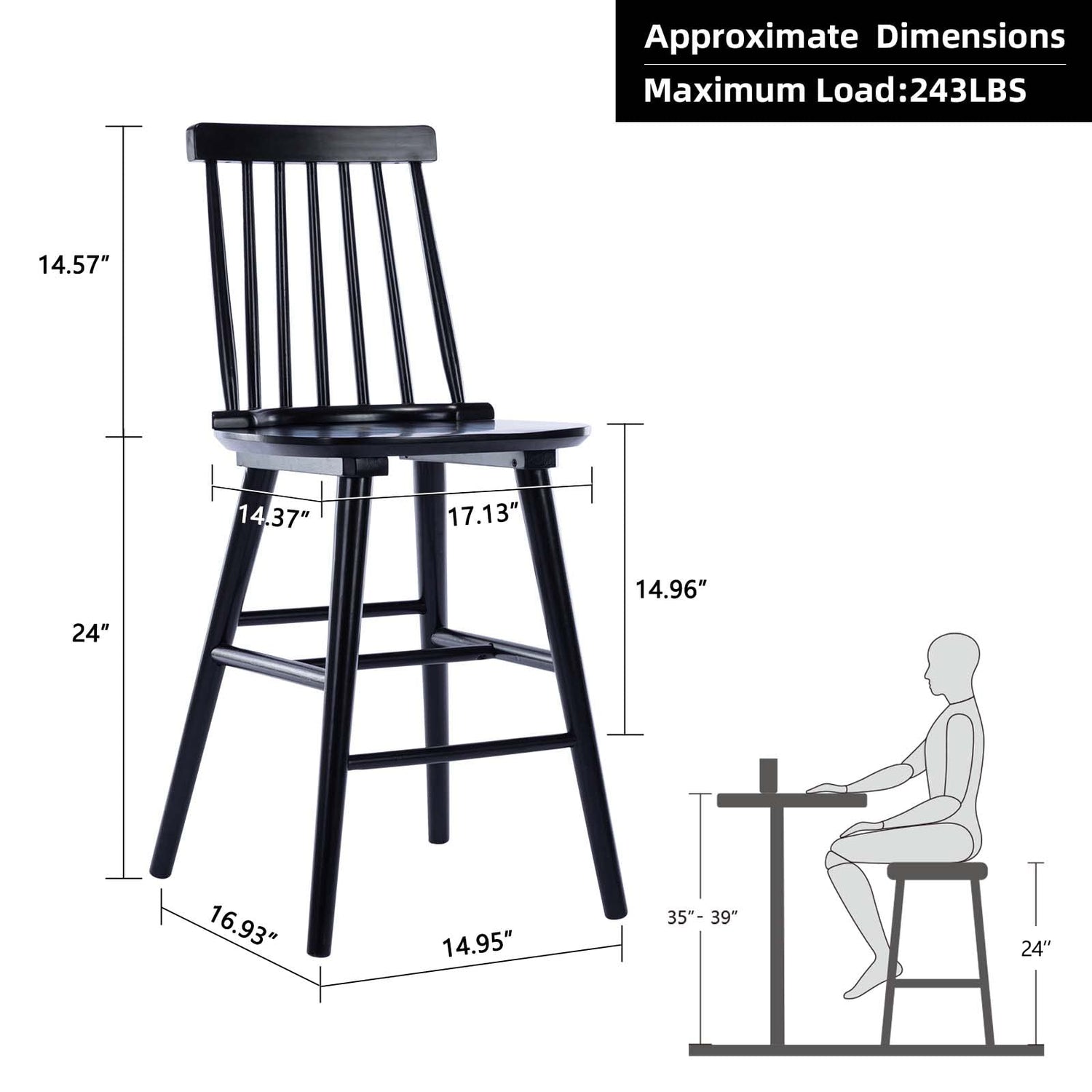 - 🌲Multiple Use: Simple clean lines with natural appearance, the country style black bar stools set of 2 easily blend into any home decor and will boost the charm of any dining area with classic design. It is an ideal choice for dining room, kitchen, bar, bistro, pub, restaurant, etc.