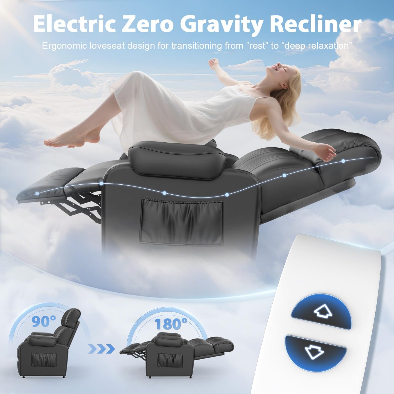 - 【90° to 180° Zero Gravity Recline】Experience full-body relaxation on this zero gravity loveseat recliner, which smoothly adjusts from upright to flat. You can stay anywhere between 90°-180°, perfect as a reclining loveseat or rv couch for sleeping, lounging, or movie marathons
