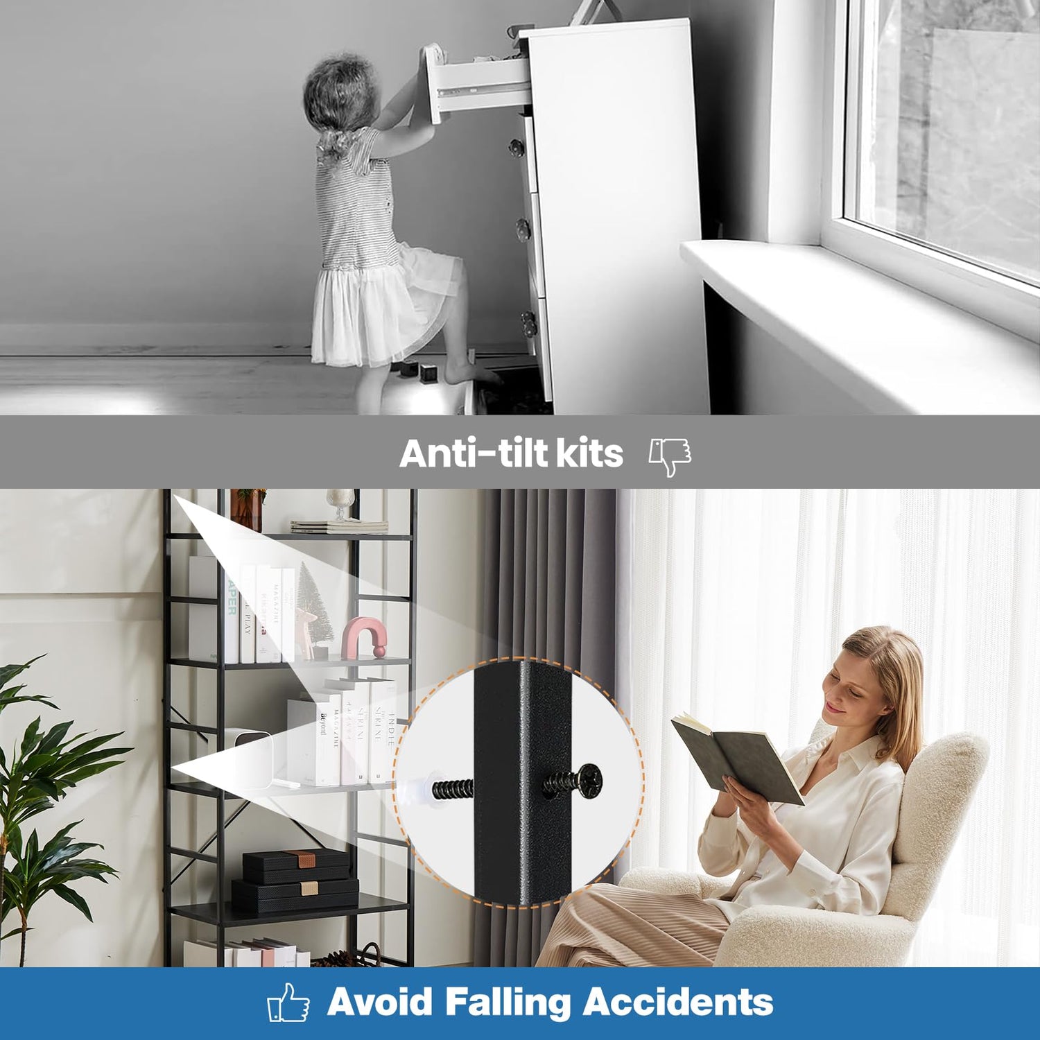 - 【Easy Assembly】Assembly is straightforward, and we provide an installation video for guidance. We also include an anti-tipping tool for wall mounting, ensuring extra stability.