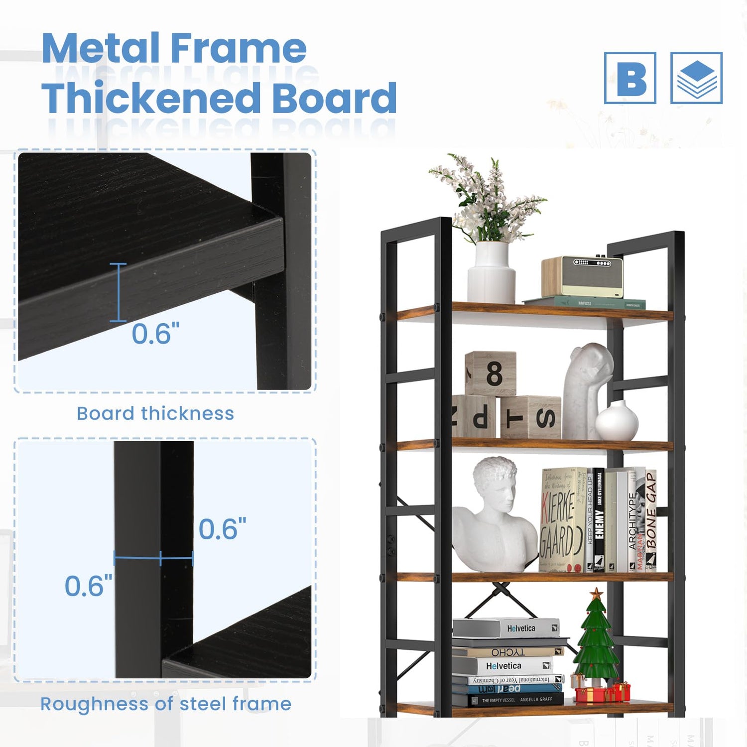 DUMOS Rustic Brown 5-Tier Tall Bookshelf - Industrial Storage Organizer for Home & Office