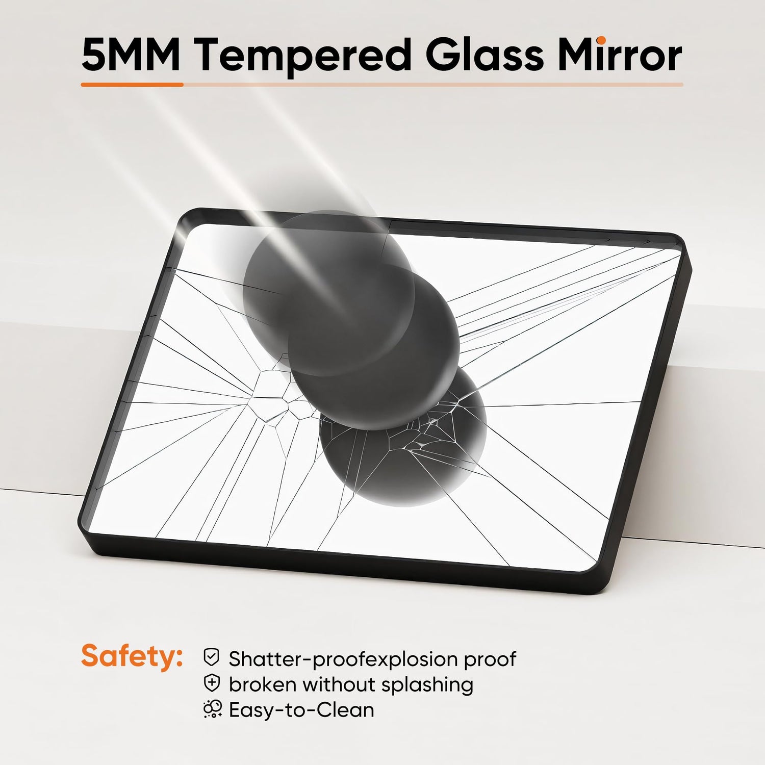 - Sturdy & Safe Mirror - The Rectangular Mirror made of 5MM tempered glass has 5 times the strength of ordinary mirrors, and will not shatter into pieces under the impact of strong force. It is robust and safe to use.