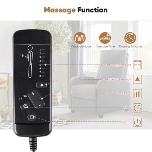 DUMOS Recliner Chair for Adults, Massage Reclining Chair for Living Room, Adjustable Home Theater Seating Single Sofa with Padded Seat Backrest and Footrest, Linen, Grey