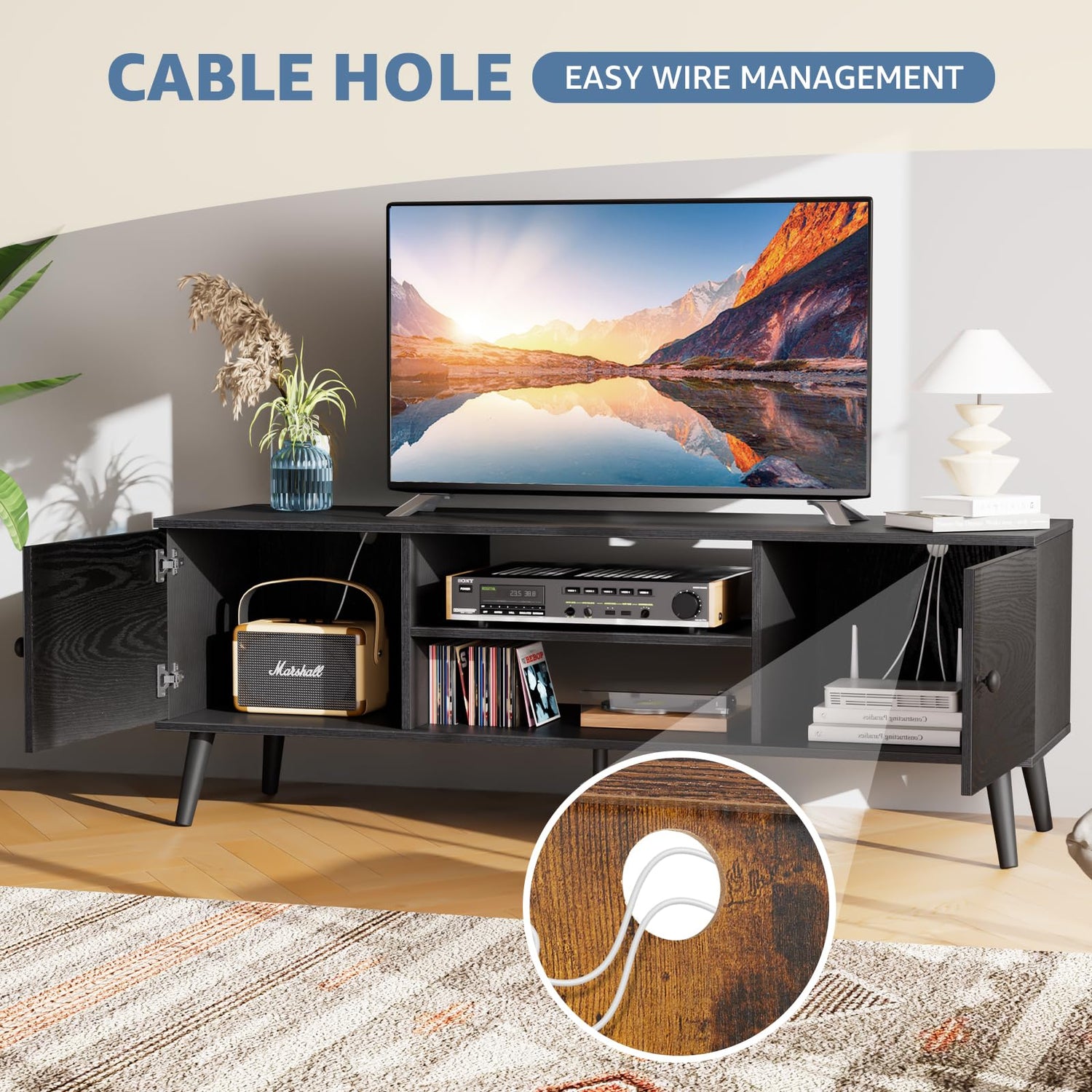 DUMOS TV Stand for 55 60 inch TV, Entertainment Center with Storage Cabinet, Mid Century Modern Media Console Table, Adjustable Hinge, Wooden Television Furniture for Living Room, Office - Black
