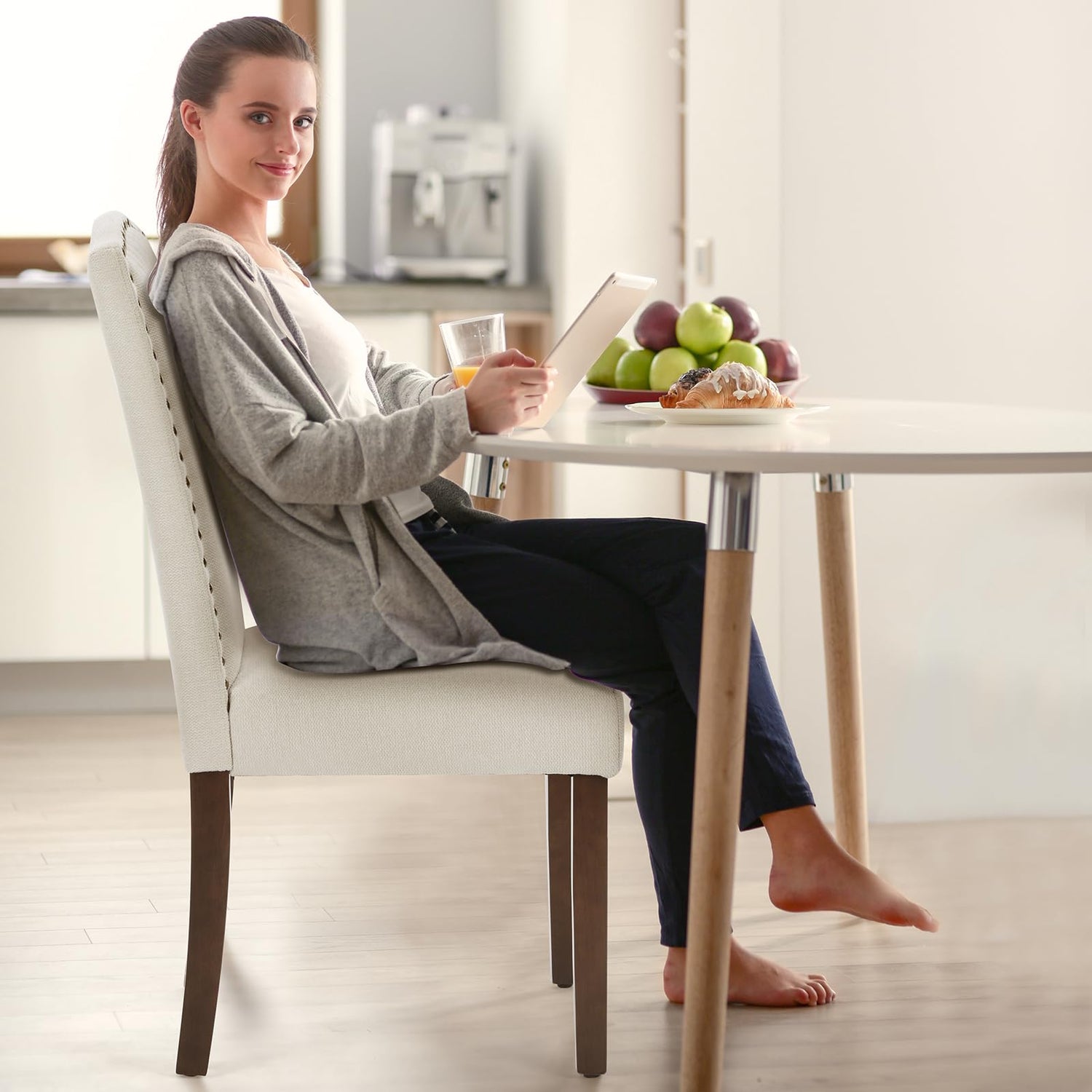 - Excellent Quality: The side chairs are covered with soft linen fabric, which is breathable and easy to clean. The sponge filling of the backrest of the seat provides support. High back is designed for super comfy back support based on ergonomic standard