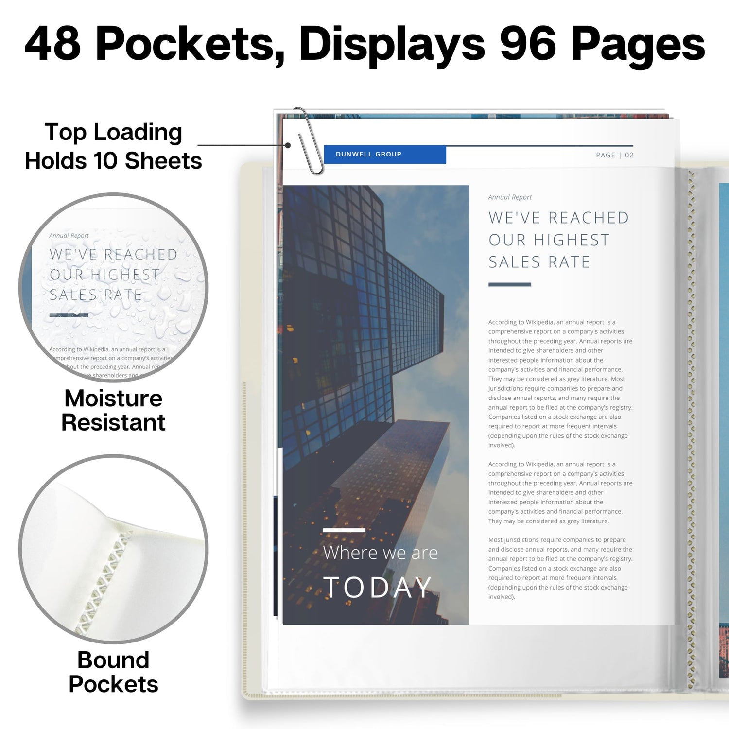 Dunwell Binder with Plastic Sleeves 48-Pocket (Ivory) - Presentation Book, 8.5 x 11 Portfolio Folder with Clear Sheet Protectors, Displays 96-Page Documents, Certificates, Important Papers