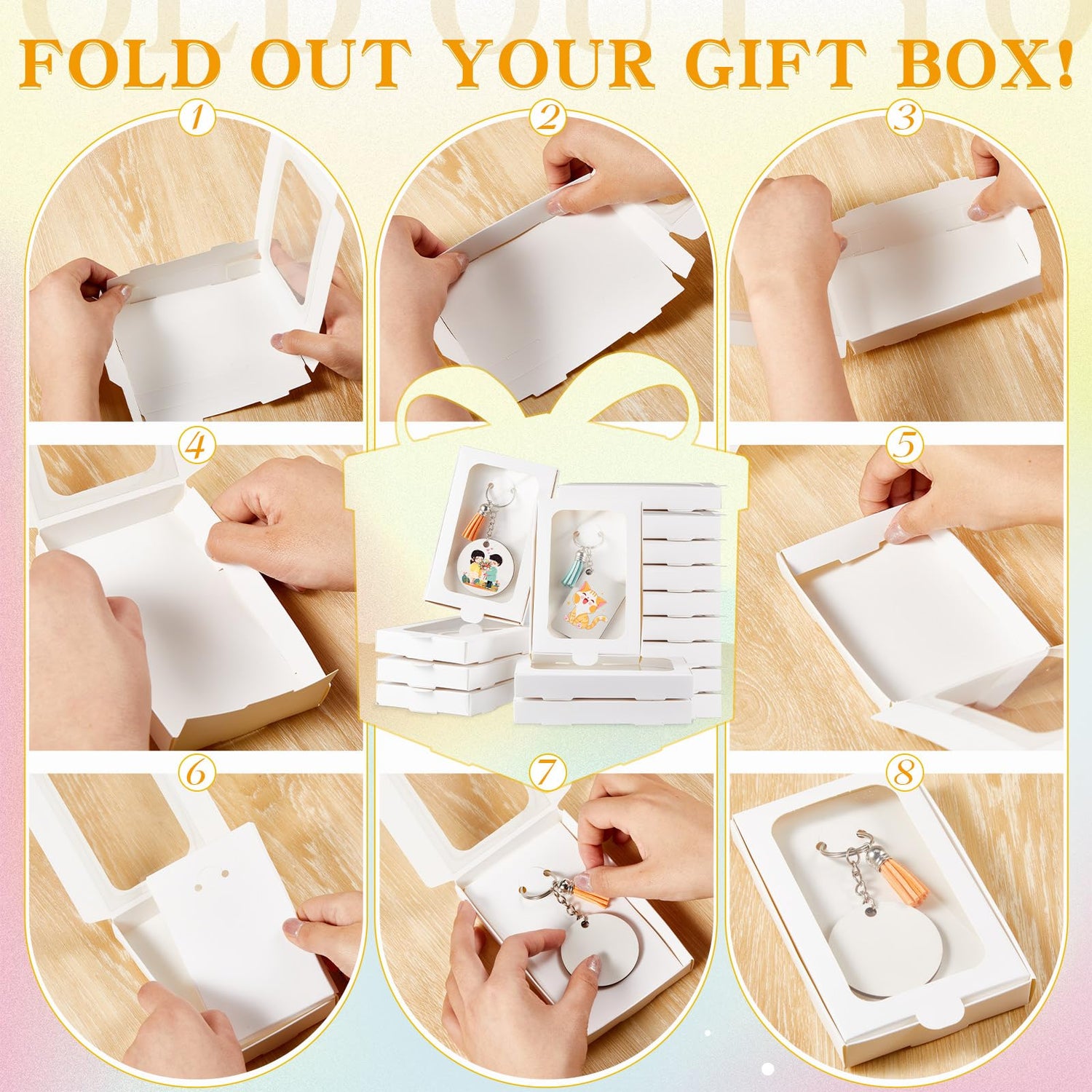 - User Friendly Assembly: with precision crease lines, these cardboard gift boxes are designed for easy folding, facilitating a quick setup without consuming much of your time; In their unfolded state, these boxes can be conveniently stored flat, minimizing storage space; Each key chain gift box is ingeniously designed to provide a convenient assembly process