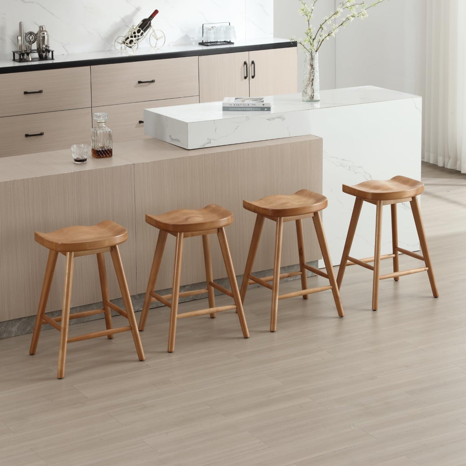 DUOMAY Backless Counter Stools Set of 4, Modern 24.25" Seat Height Low Bar Chairs Solid Rubber Wood Counter Height Barstools Farmhouse Dining Stools for Home Kitchen, Brown