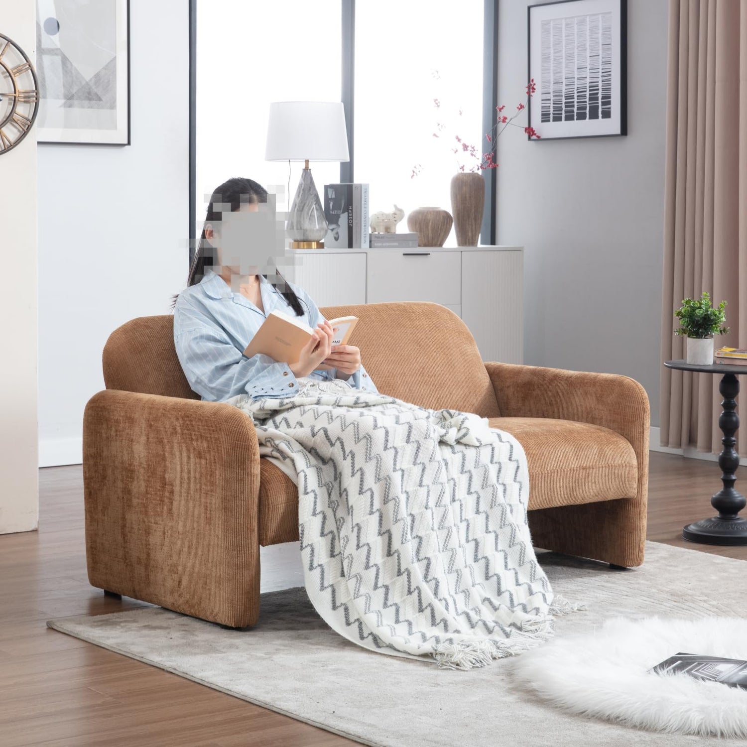 DUOMAY Cute Chenille Loveseat Sofa, Modern 55" Wide Seat Couch Minimalist Style Comfy Deep Seat Sofa for 2-3 Seater for Living Room Apartment, Brown