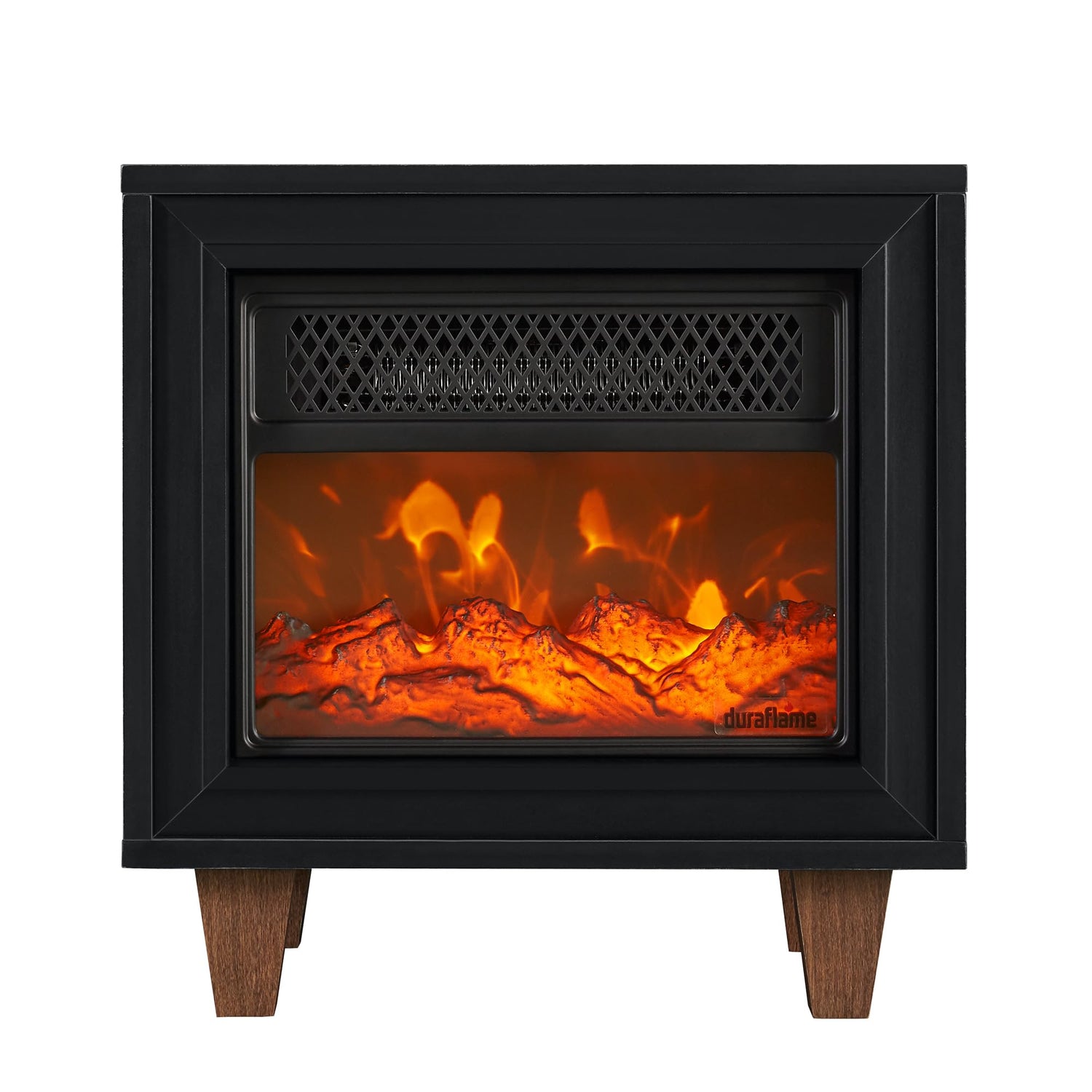 Details: Keep the chill away in any of your favorite spaces with this duraflame® Electric Fireplace Portable Heater. This small heater offers big style, instant warmth, and is a perfect fit in the living room, your home office, and even inside your RV. Plus, the legs can be removed for customizable style. Providing supplemental zone heating for up to 400 square feet, it helps you save money when you lower your thermostat and use this electric fireplace space heater to add heat only when and where you need it. With low and high heat settings, you can quickly adjust the heat output with the flick of a switch. Plus, the flame effect operates independently from the heater, so you can enjoy the ambiance of gentle fire any time of year. Safe to use around children and pets, this easy-to-use heater arrives fully assembled and ready to use right out of the box. Manufactured and distributed by Twin-Star International, Inc., under license from Duraflame, Inc. duraflame®, the flame symbol and logo are registered trademarks of Duraflame, Inc