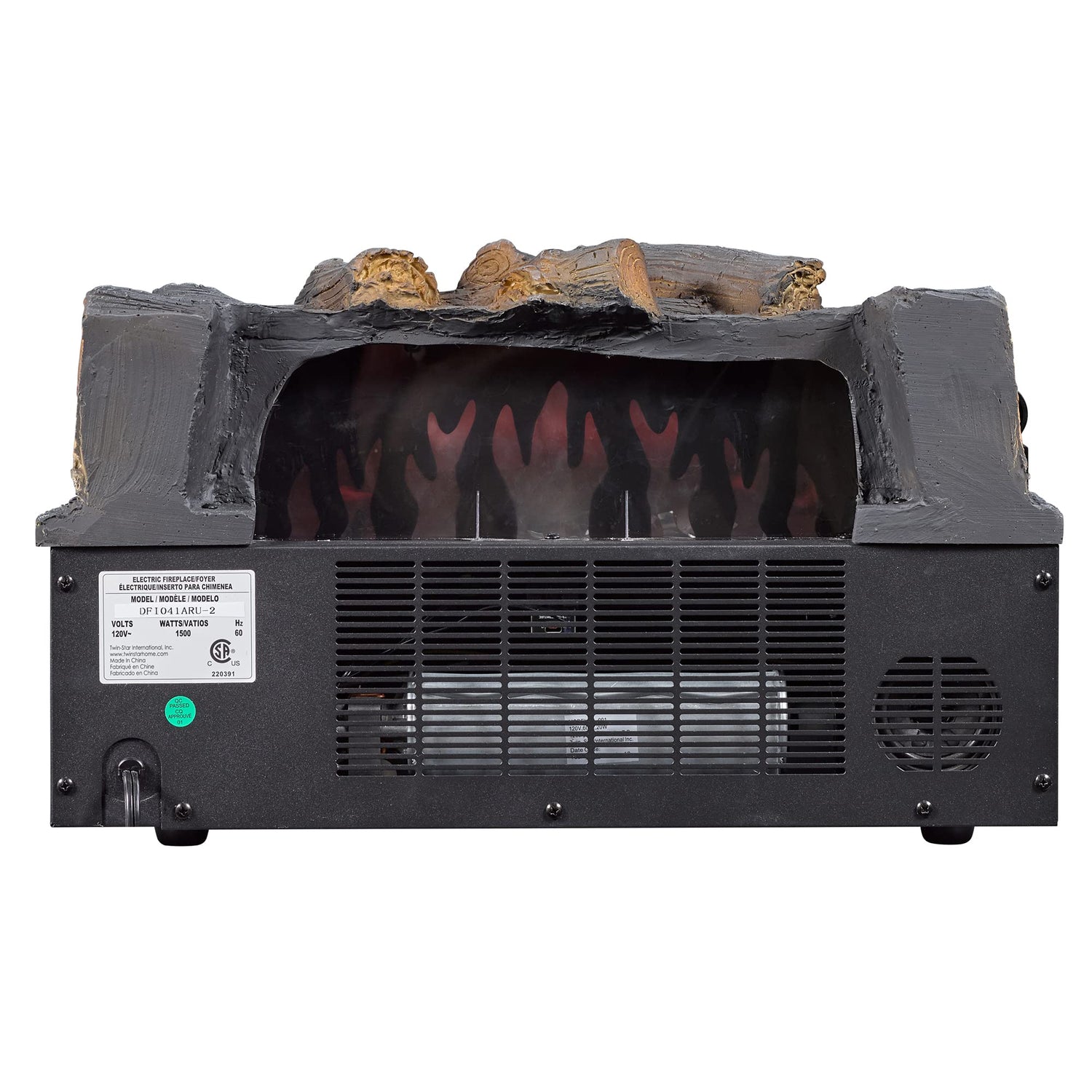 Details: Enjoy the dancing flames and crackling sounds of a wood burning fireplace - without the mess - when you get the duraflame® Infrared Quartz Electric Juniper Log Set Heater with Crackling Sound. Place it into an existing fireplace and watch the dancing flames project on the back of your fireplace. Plus, the realistic juniper log set and ember bed sit in a black finish fire grate and showcase a rolling flame effect that works with or without heat or crackling fire sounds. Provides supplemental heat for up to 1,000 square feet to help you save money. No hookups or vents required, just plug it in and enjoy immediately. Control most log set functions from anywhere in the room using the included multi-function remote control. Simply adjust the temperature with the thermostat knob on the log unit, then you can control crackling sound volume, timer, and flame speed and brightness all from the remote. Manufactured and distributed by Twin-Star International, Inc., under license from Duraflame, Inc. duraflame®, the flame symbol, and logo are registered trademarks of Duraflame, Inc.