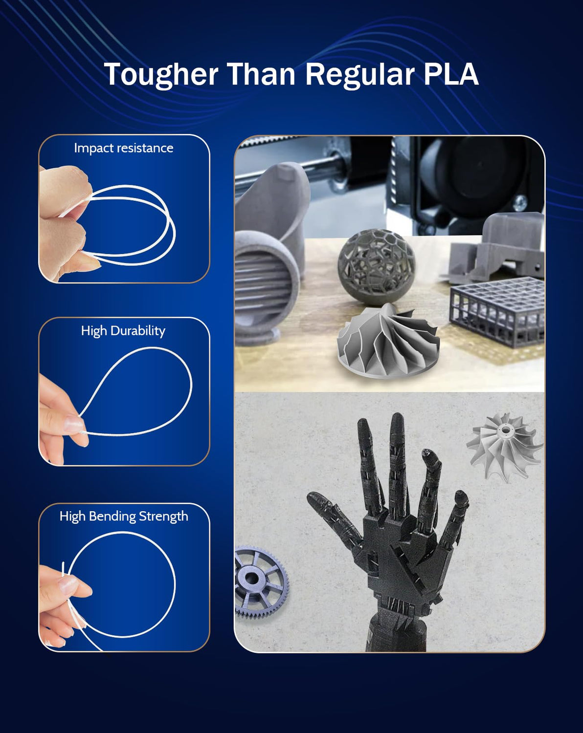 - SMOOTH & STABLE PRINTING - Duramic 3D promises no tangles, no bubbles and no clogs due to its rigid manufacturing quality control. Its performance is stable with smooth extrusion and excellent adhesion, without stringing and warping issues under optimal settings. Recommended Extrusion/Nozzle Temperature 240±10°C (446℉ - 482℉), heated Bed Temp: 70°C - 80°C (158℉ - 176℉).