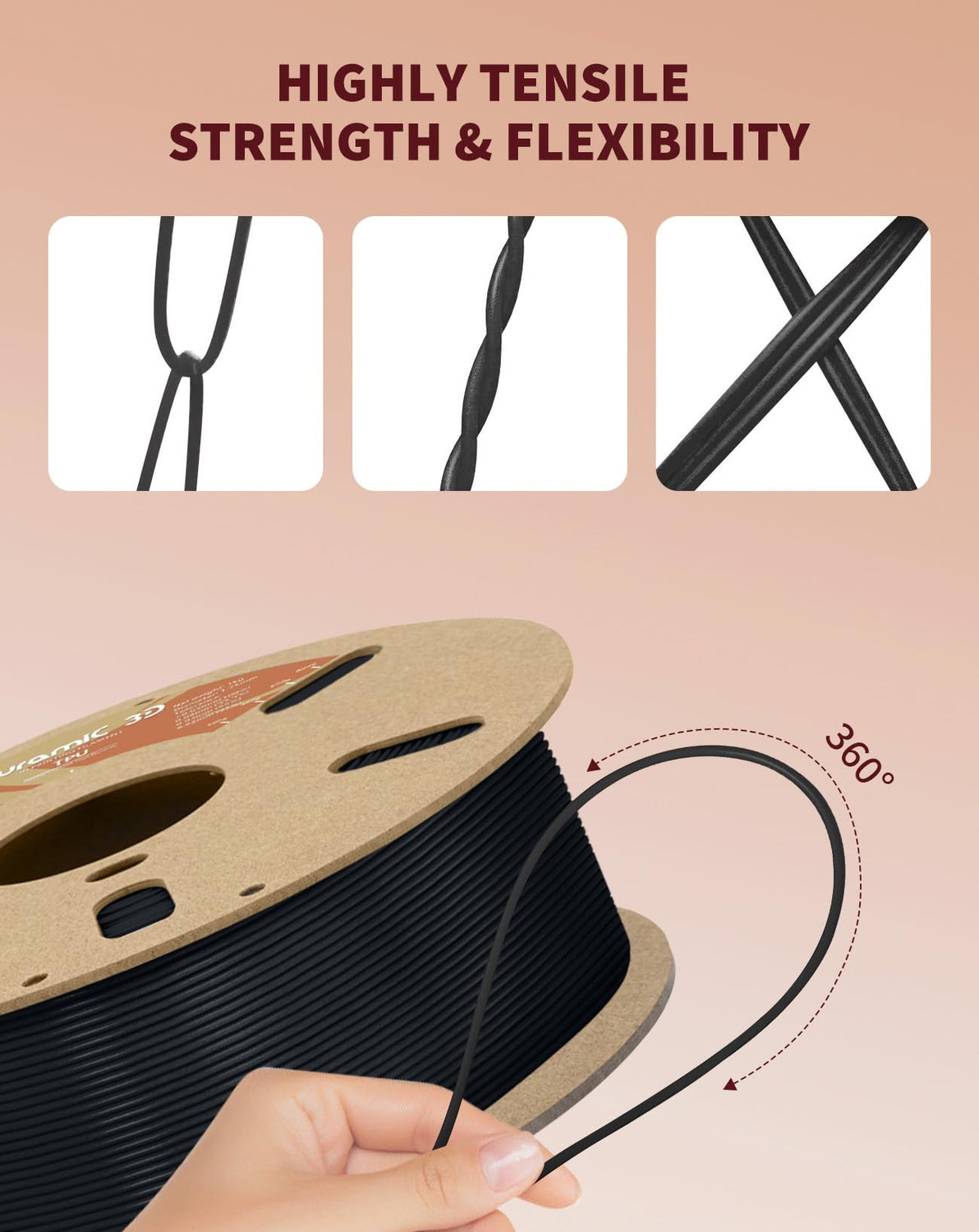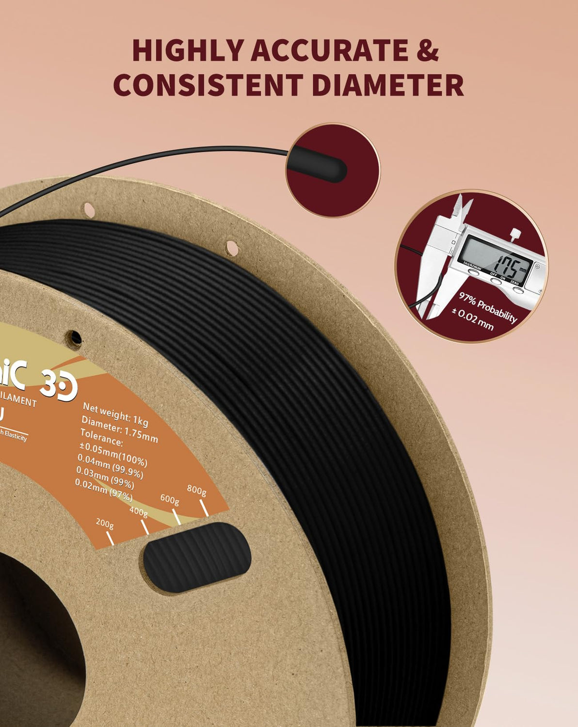 DURAMIC 3D TPU Filament 1.75mm Black, TPU Flexible Filament 95A, Soft TPU 3D Printing Filament, 1kg Spool, Dimensional Accuracy +/- 0.05mm, Black 1 Pack