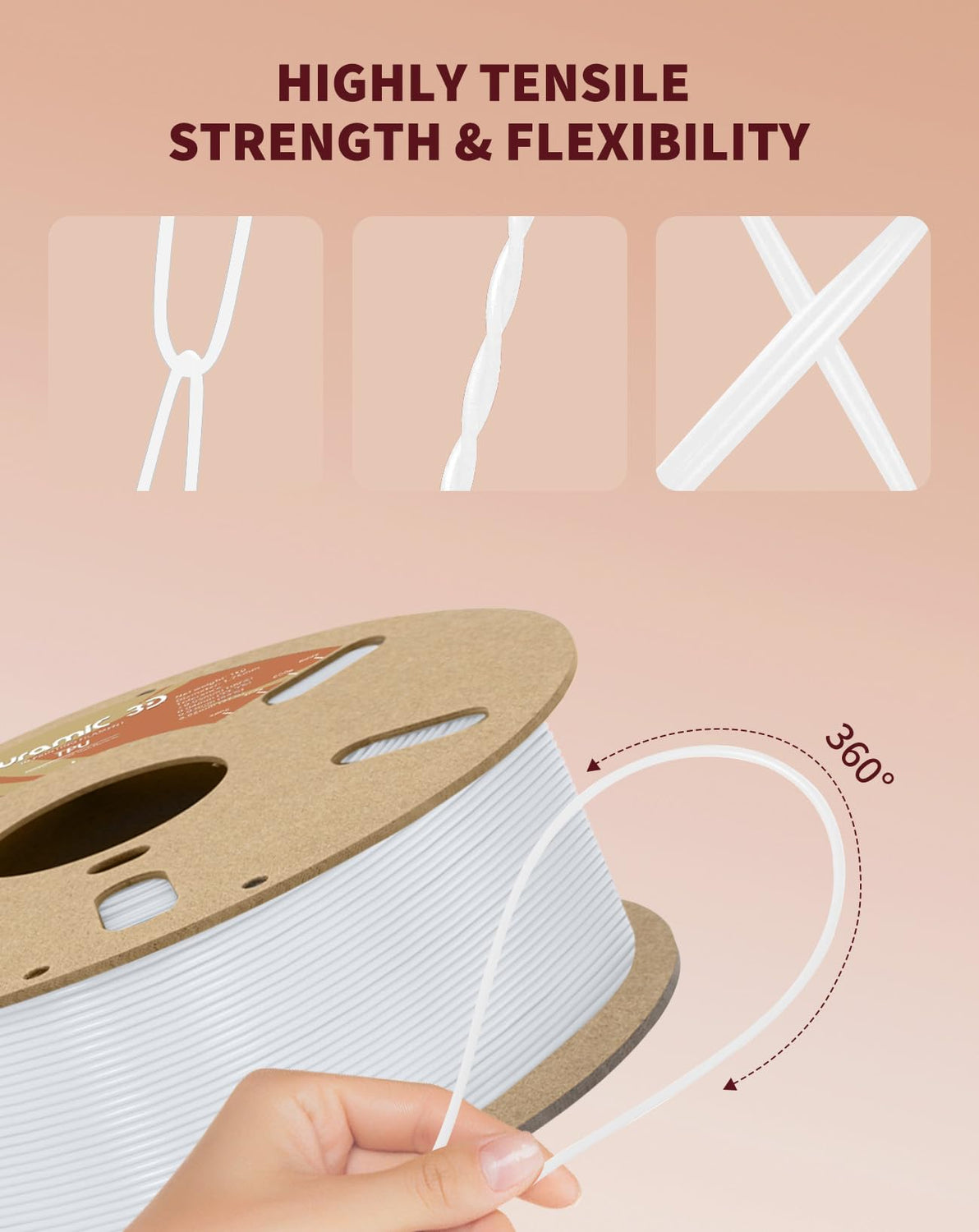 DURAMIC 3D TPU Filament 1.75mm, Soft TPU 3D Printing Filament 95A, 1kg Spool, +/- 0.05mm Accuracy, White 1 Pack