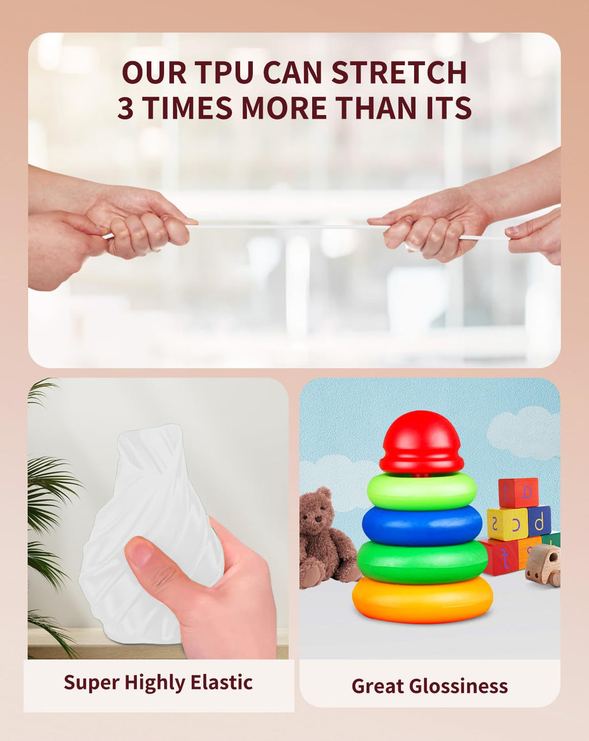 - High Elasticity & Strength - Duramic TPU filament 1.75mm features not only the high elasticity to stretch 3 times more than its original length, but also high strength resistance with shore hardness of 95A. Duramic TPU is a perfect choice if you want to print rubber-like flexible and resistant models, parts, jigs and tools, etc.