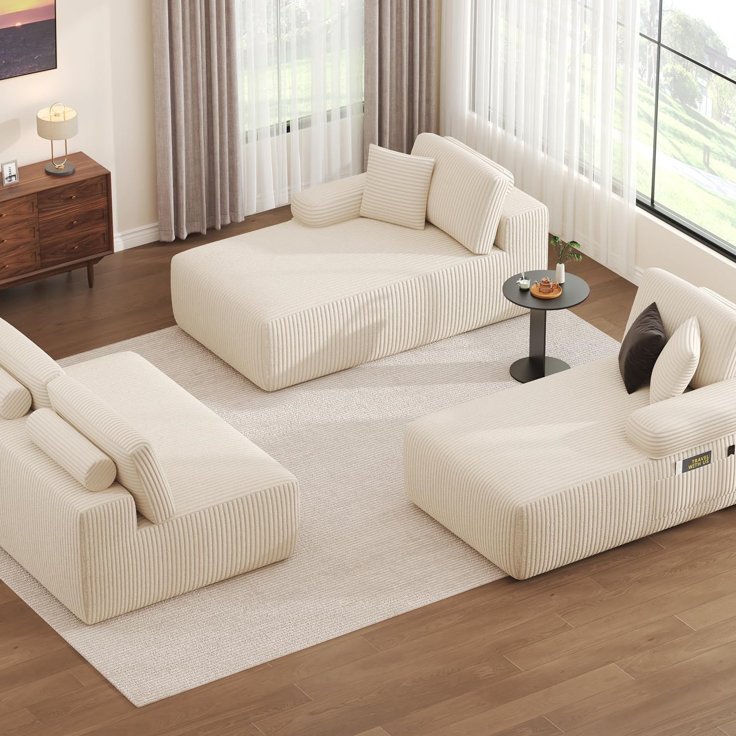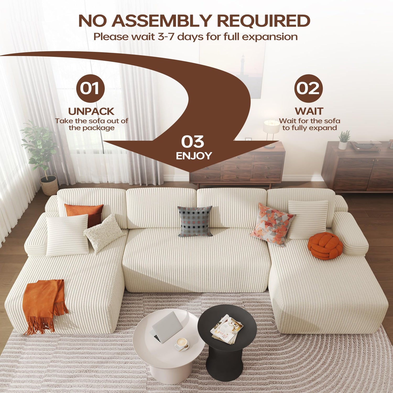 DURASPACE 126.2'' Modular Sectional Sofa, Convertible U Shaped Cloud Couch with Memory Foam, Corduroy Boneless Sectional Couches for Living Room, No Assembly Required (Beige)