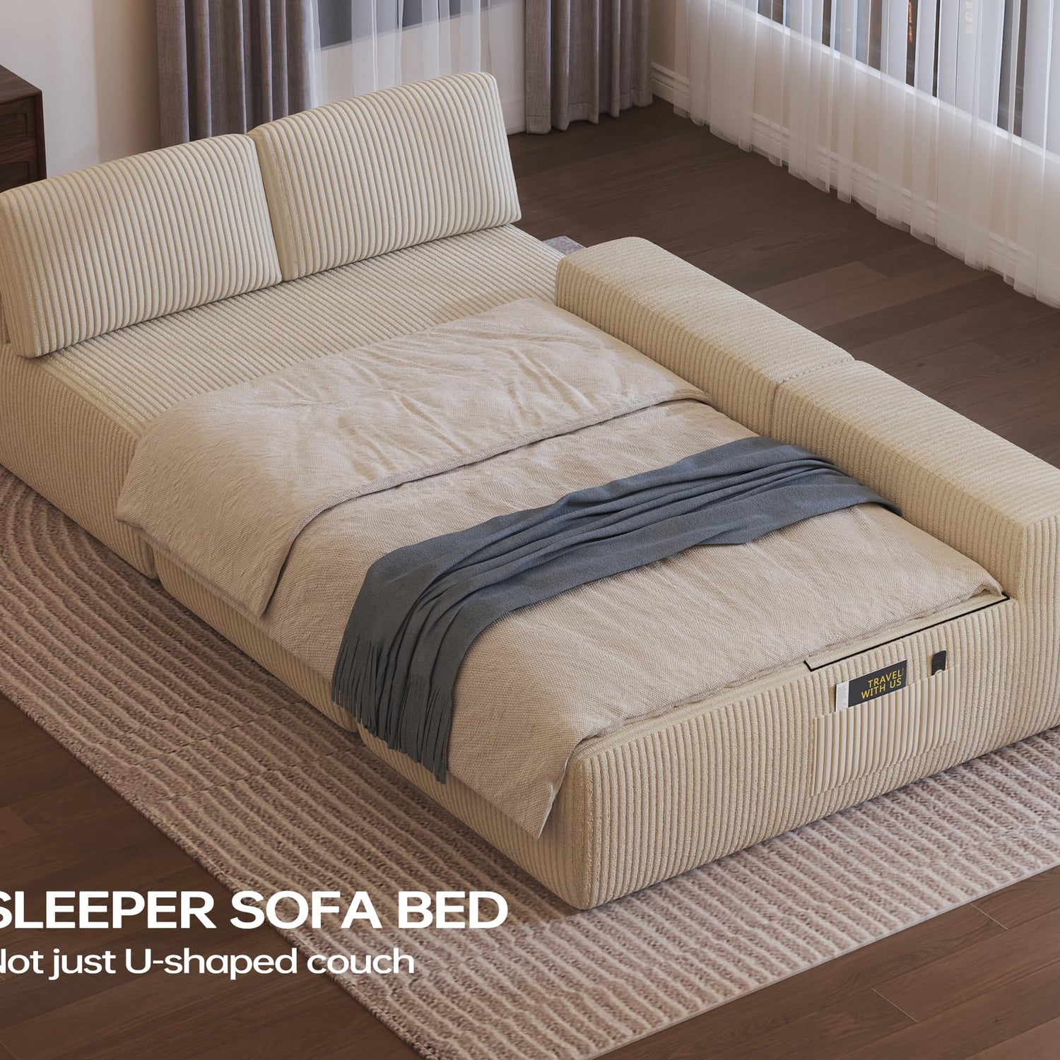 - 【One Sofa, Two Ways to Use It】Unlike regular U-shaped sofas, this boneless foam sofa comes with three movable modules that can be rearranged into a bed—measuring approximately 55.2” x 97.4”— giving you ample space for sleeping or lounging.